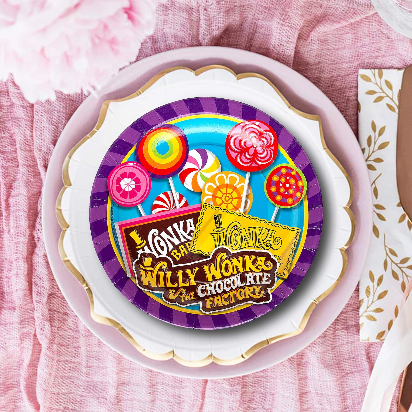8 Count Willy Wonka Candy Theme Paper Dinner Plates 9 Inch for Birthday Party