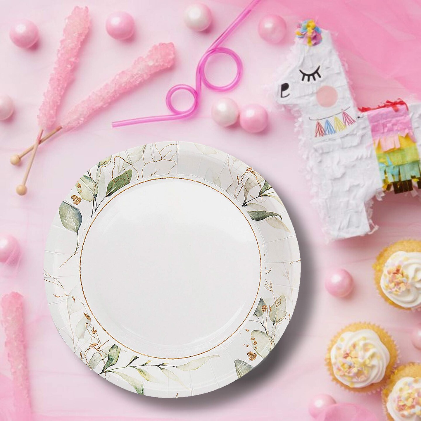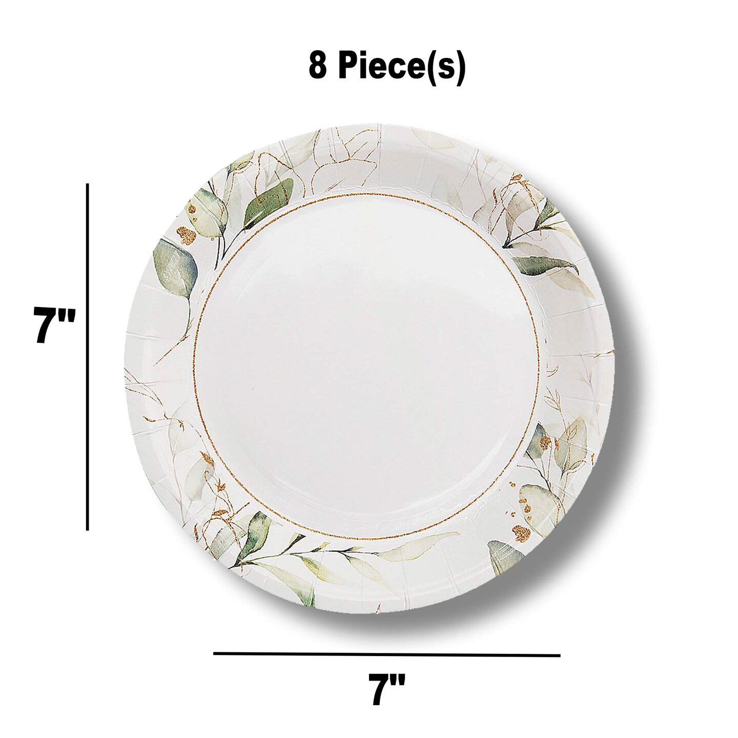 8 Ct. Eucalyptus Paper Dessert Plates 7-Inch Elegant Greenery Wedding or Shower Tableware