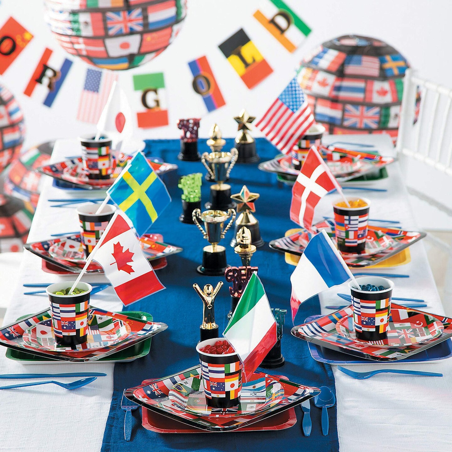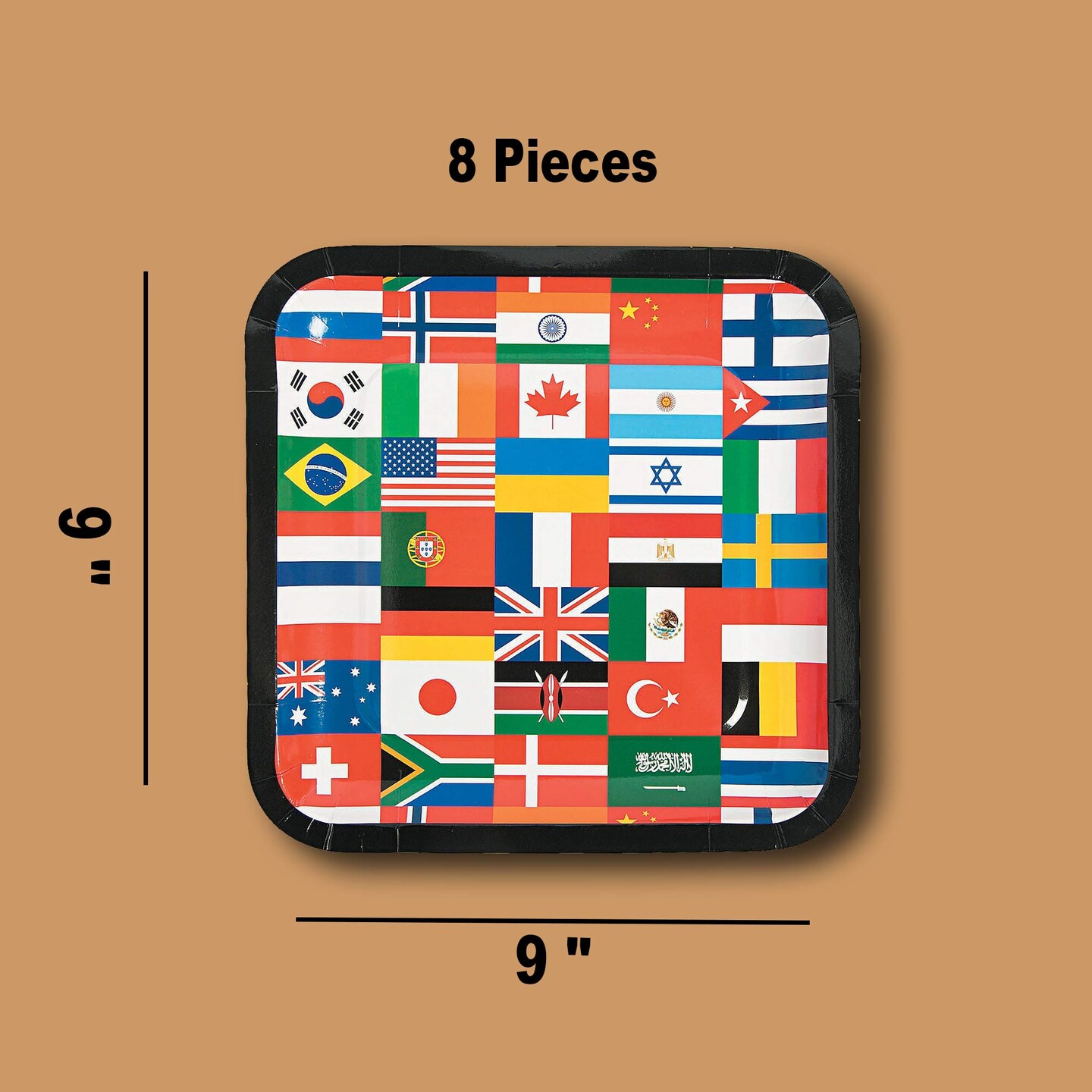 8 Ct. Flags of All Nations International Party Square Paper Dinner Plates 9" Multinational Flag Design