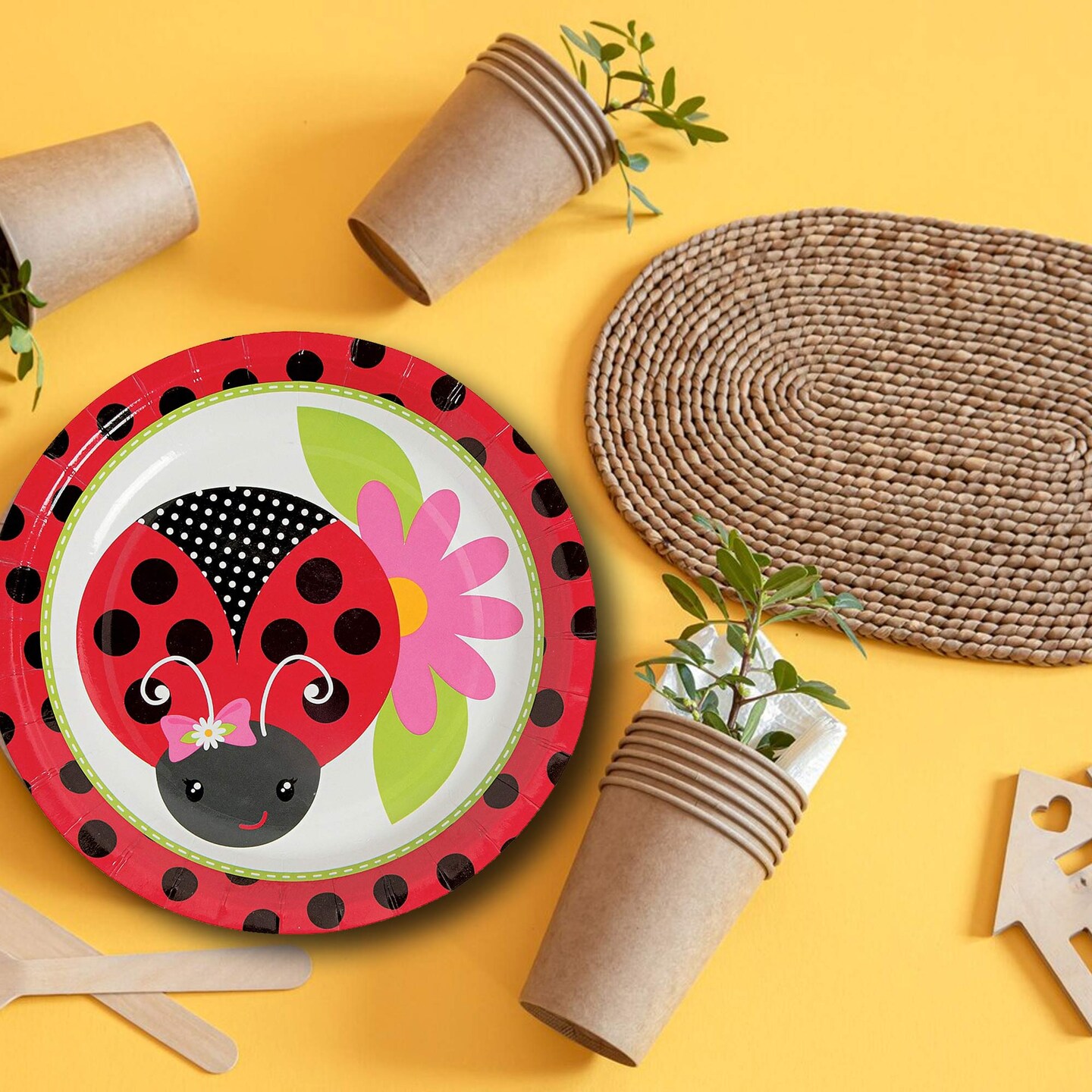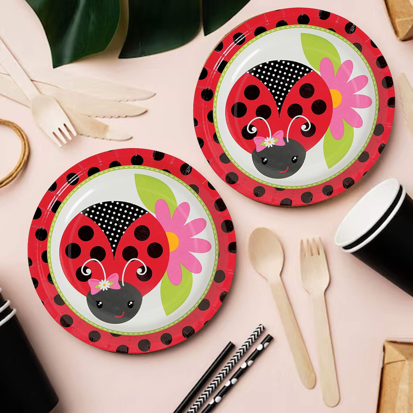 8 Ct. Little Ladybug Dessert Plates 7" Sturdy Paper Plates with Cute Bug Design