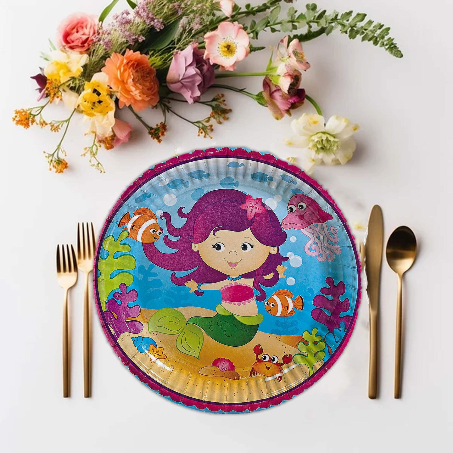 8 Ct. Mermaid Party Paper Dinner Plates Underwater Theme Birthday Supplies 9"