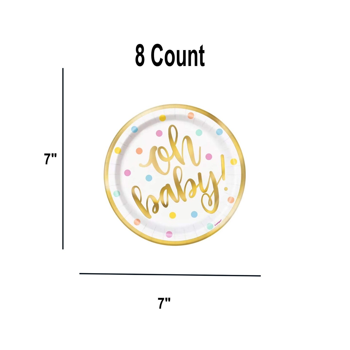 8 Ct. Oh Baby Paper Dessert Plates 7" Colorful Disposable Party Plates