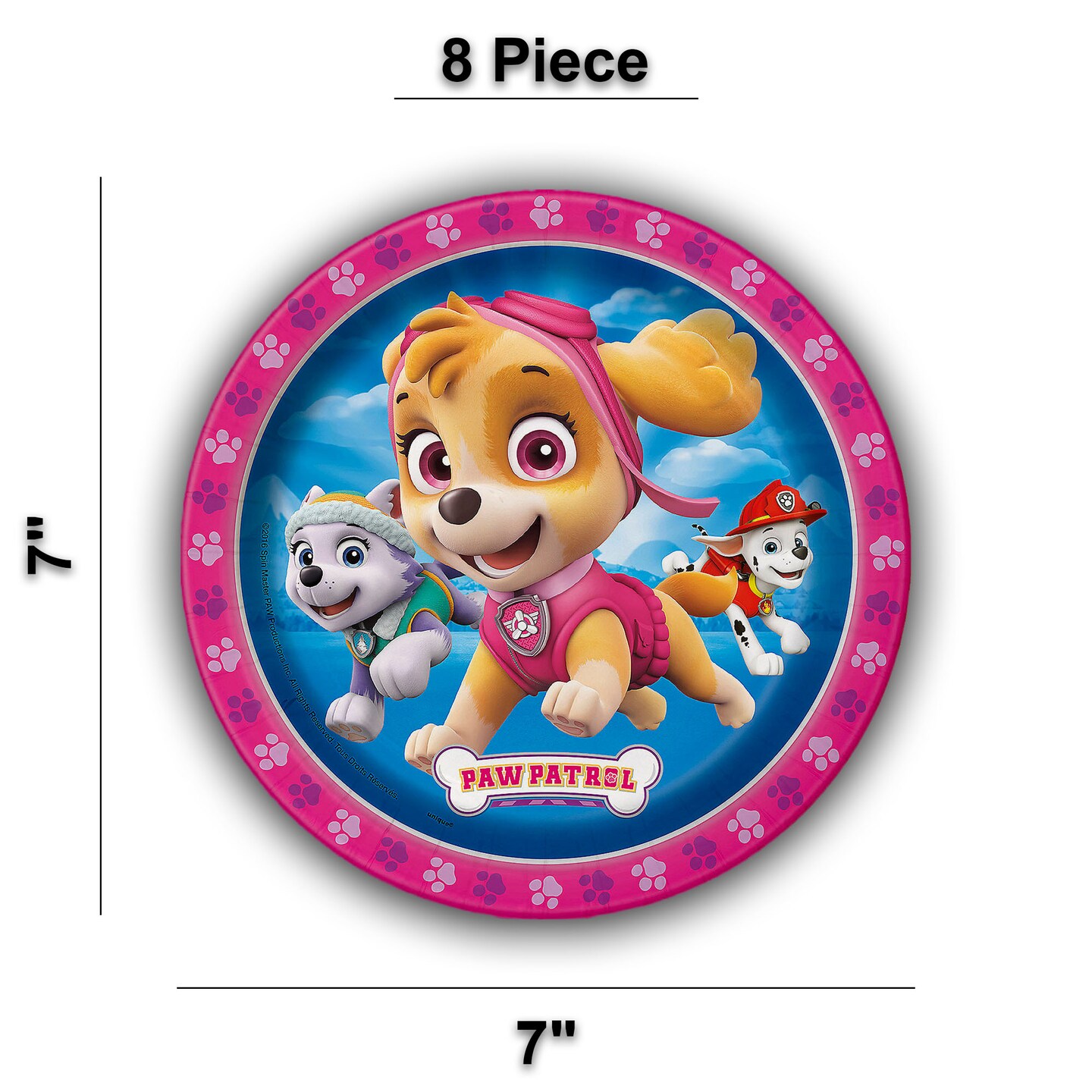 8 Ct. Pink Paw Patrol Paper Dessert Plates 7" Skye Party Plates for Kid's Celebrations