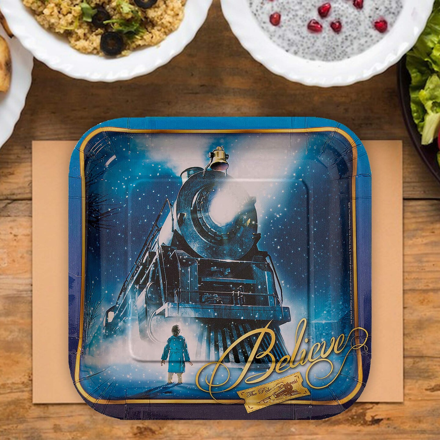 8 Ct Polar Express Paper Plates Holiday Christmas Party Supplies Square Paper Plates 9"