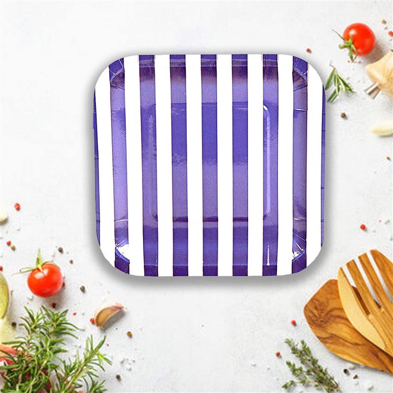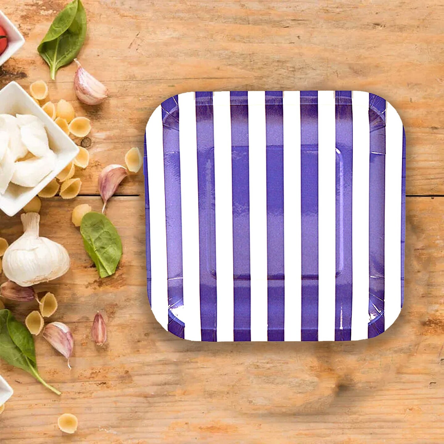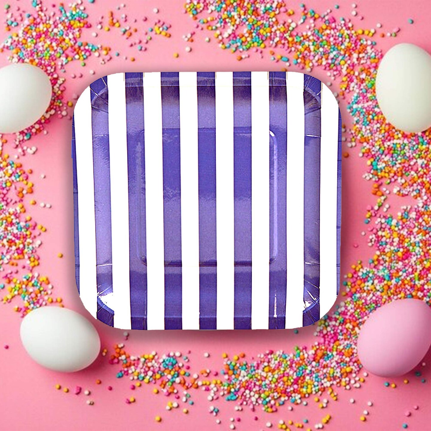 8 Ct. Purple Striped Square Paper Dessert Plates Bold Party Tableware 7 1/4"