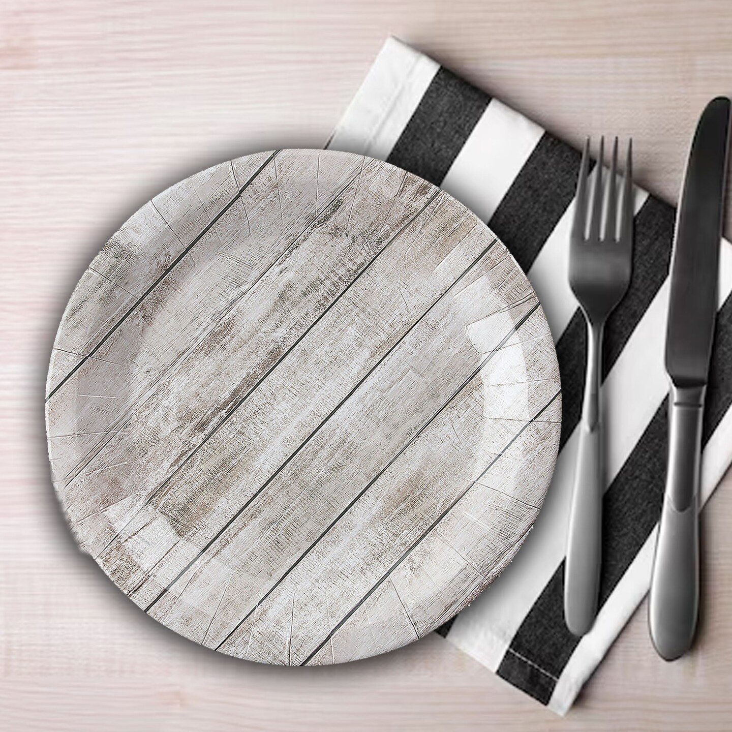 8 Ct. Shiplap Rustic Party Paper Dinner Plates 9" Disposable Chic Rustic Tableware