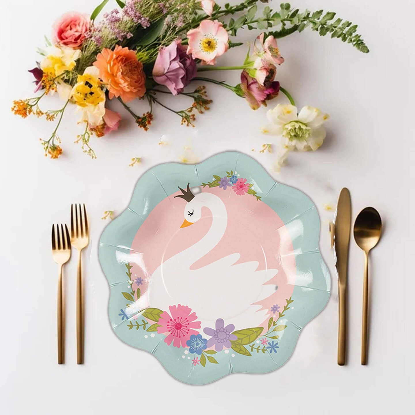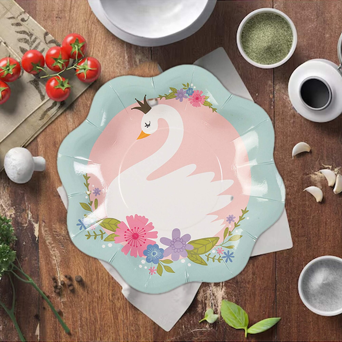 8 Ct. Sweet Swan Scalloped Paper Dessert Plates 8 1/2" Elegant Pastel Party Tableware