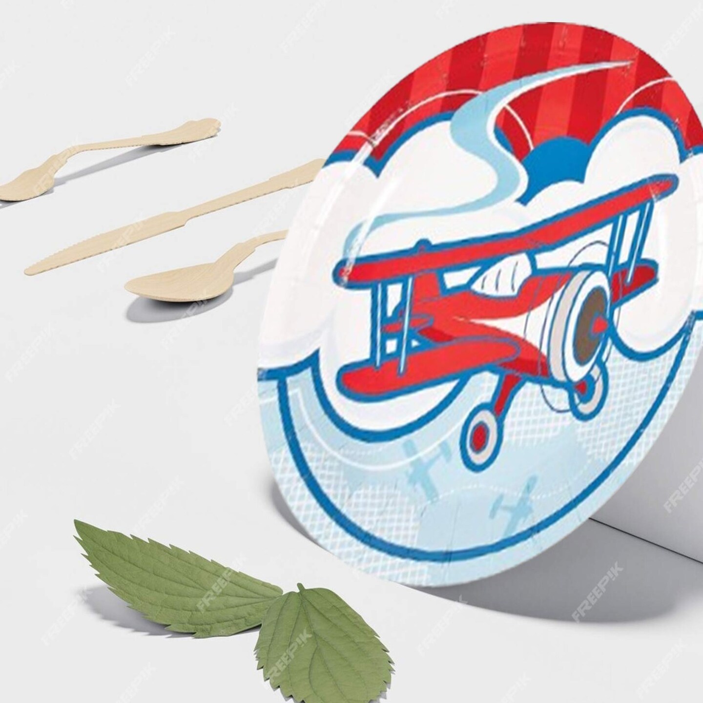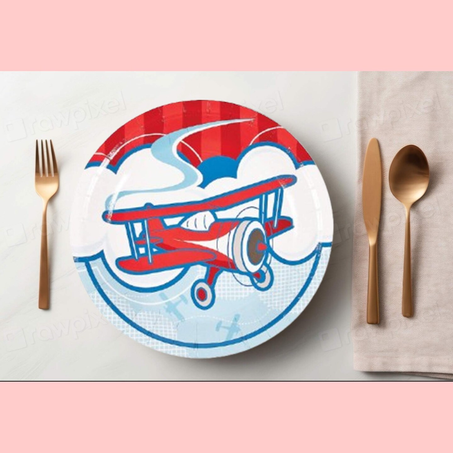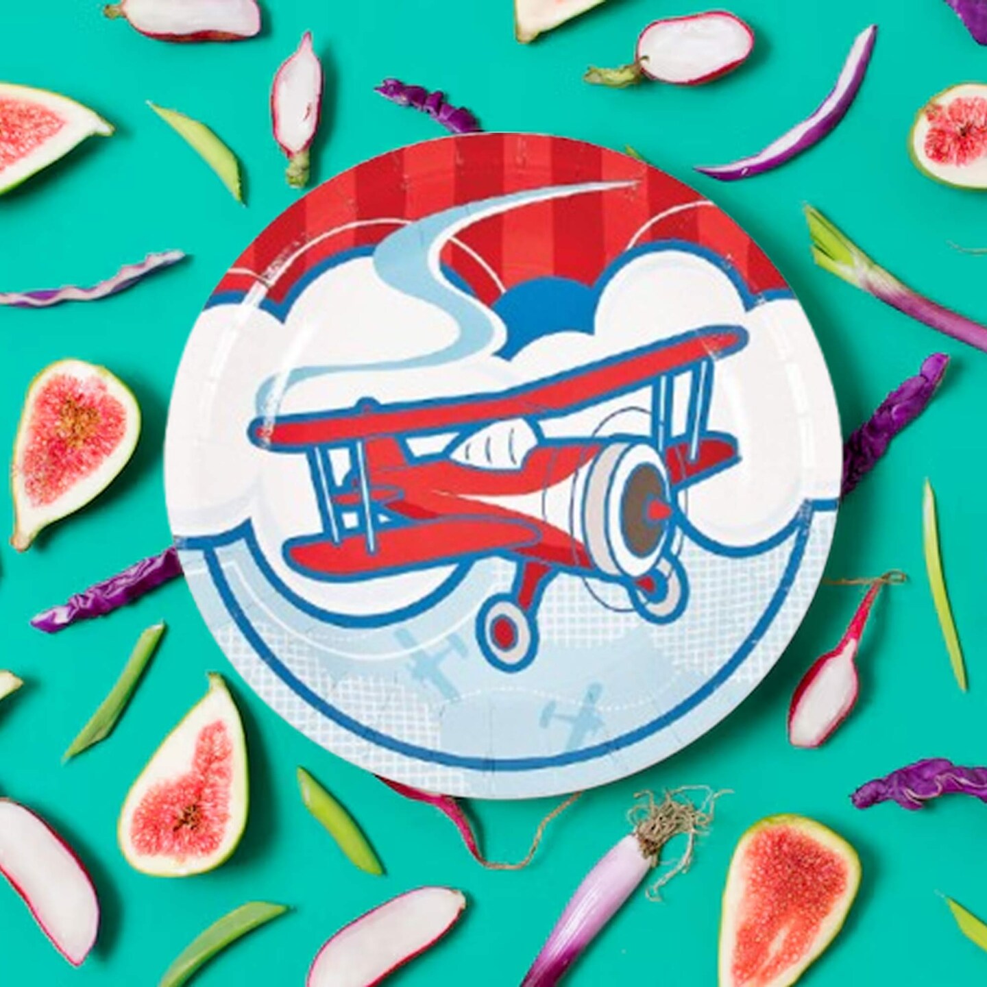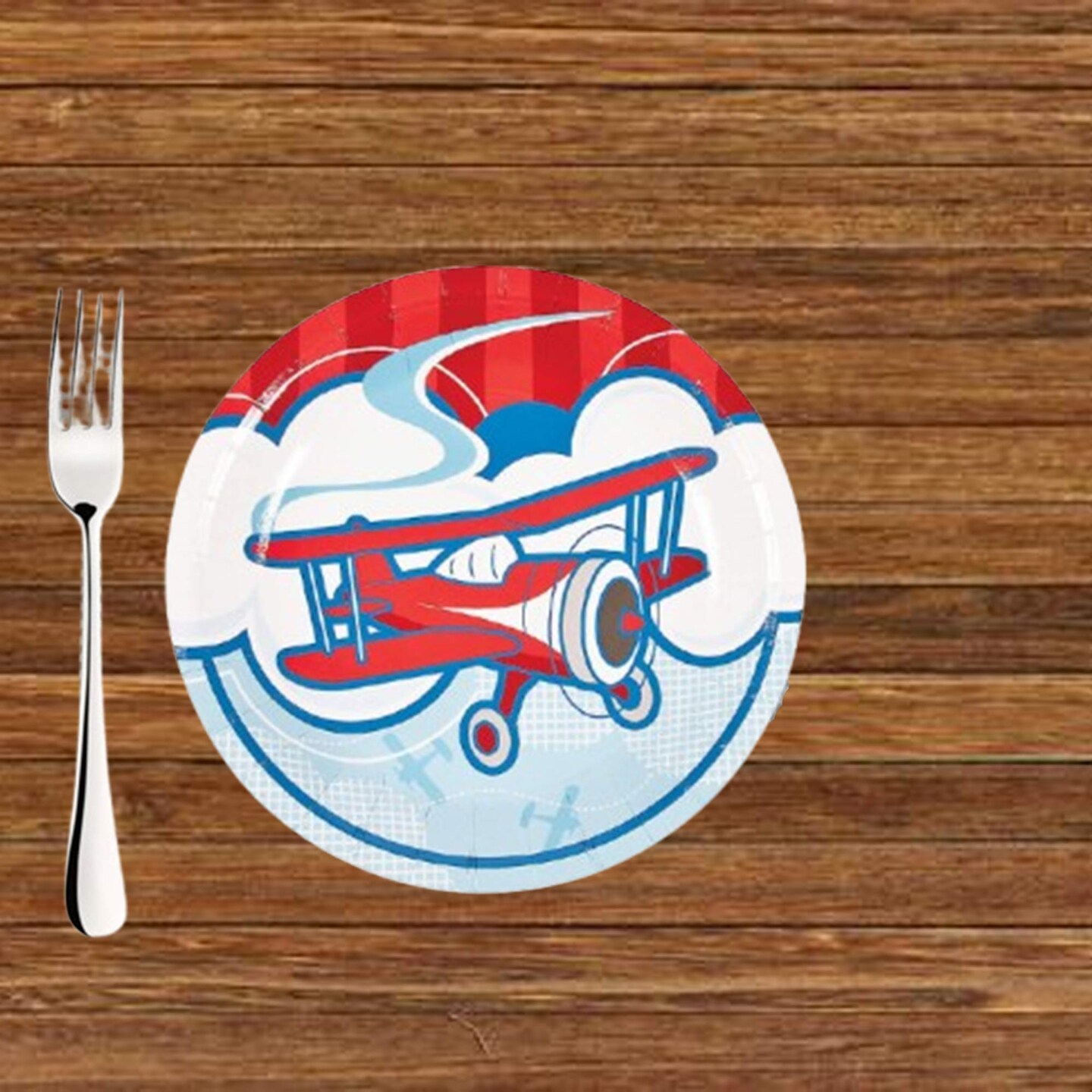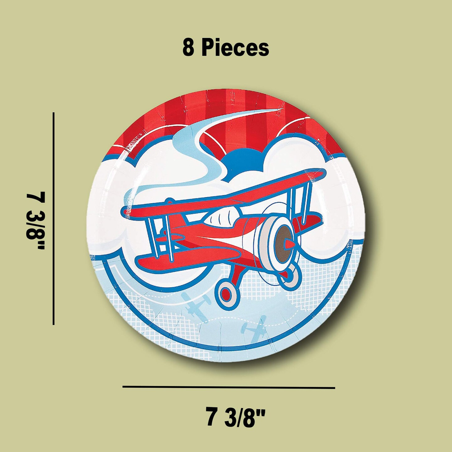 8 Ct. Up & Away Airplane Dessert Plates 7.38" Paper Plates for Travel & Birthday Themes