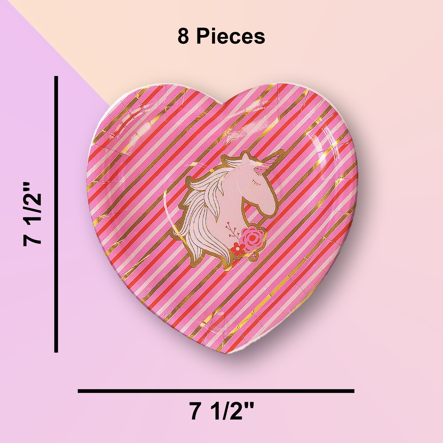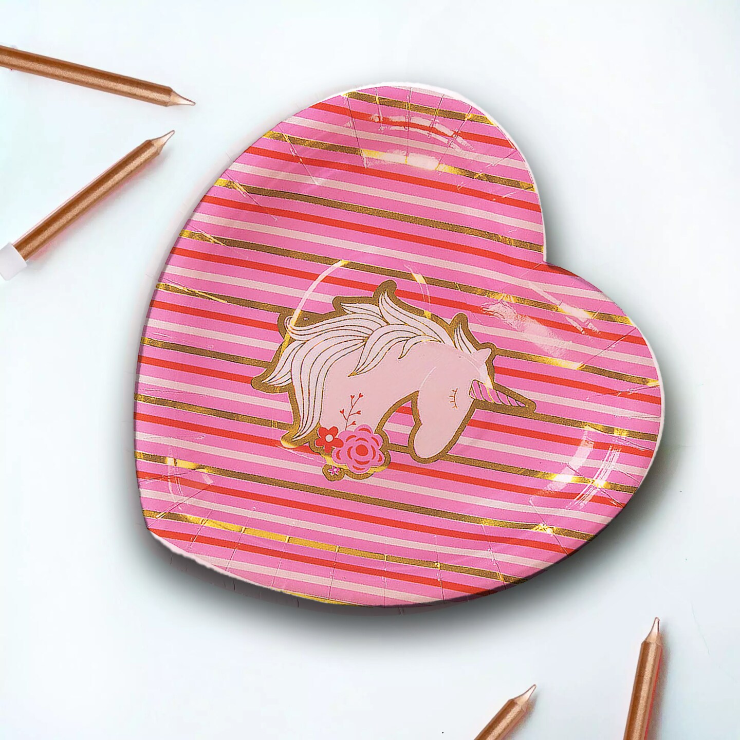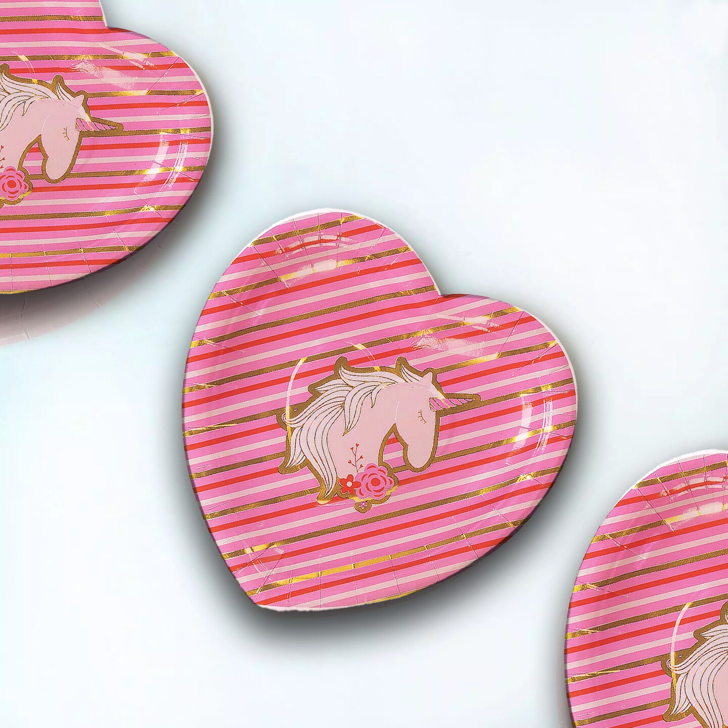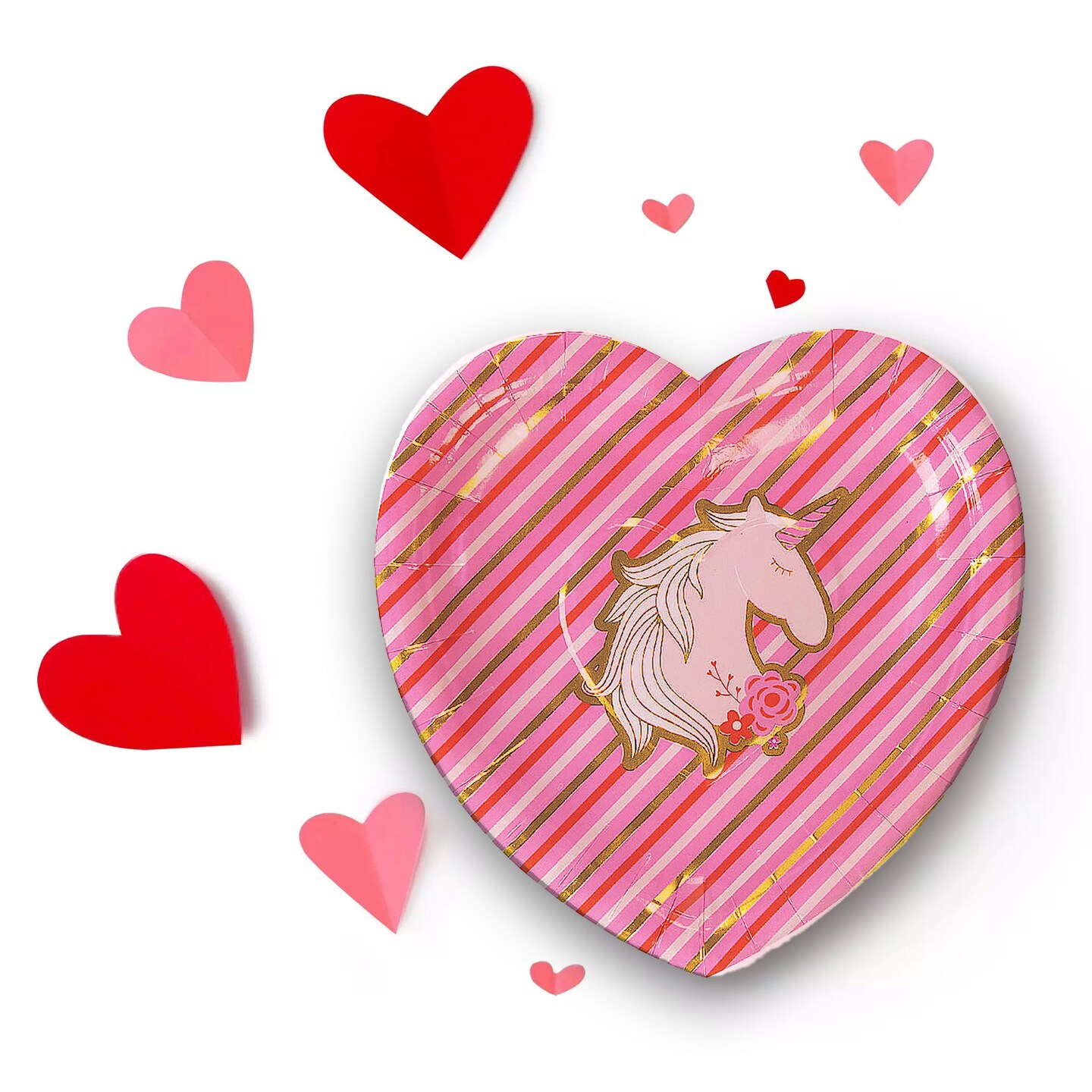 8 Ct. Valentine's Day Unicorn & Gold Foil Paper Dessert Plates 7.5"
