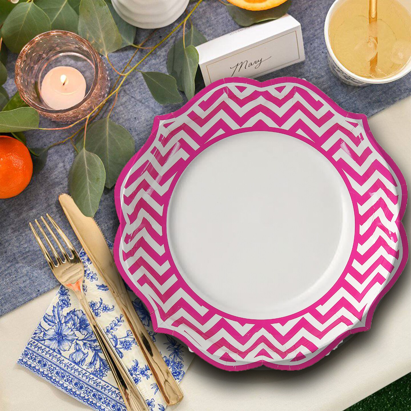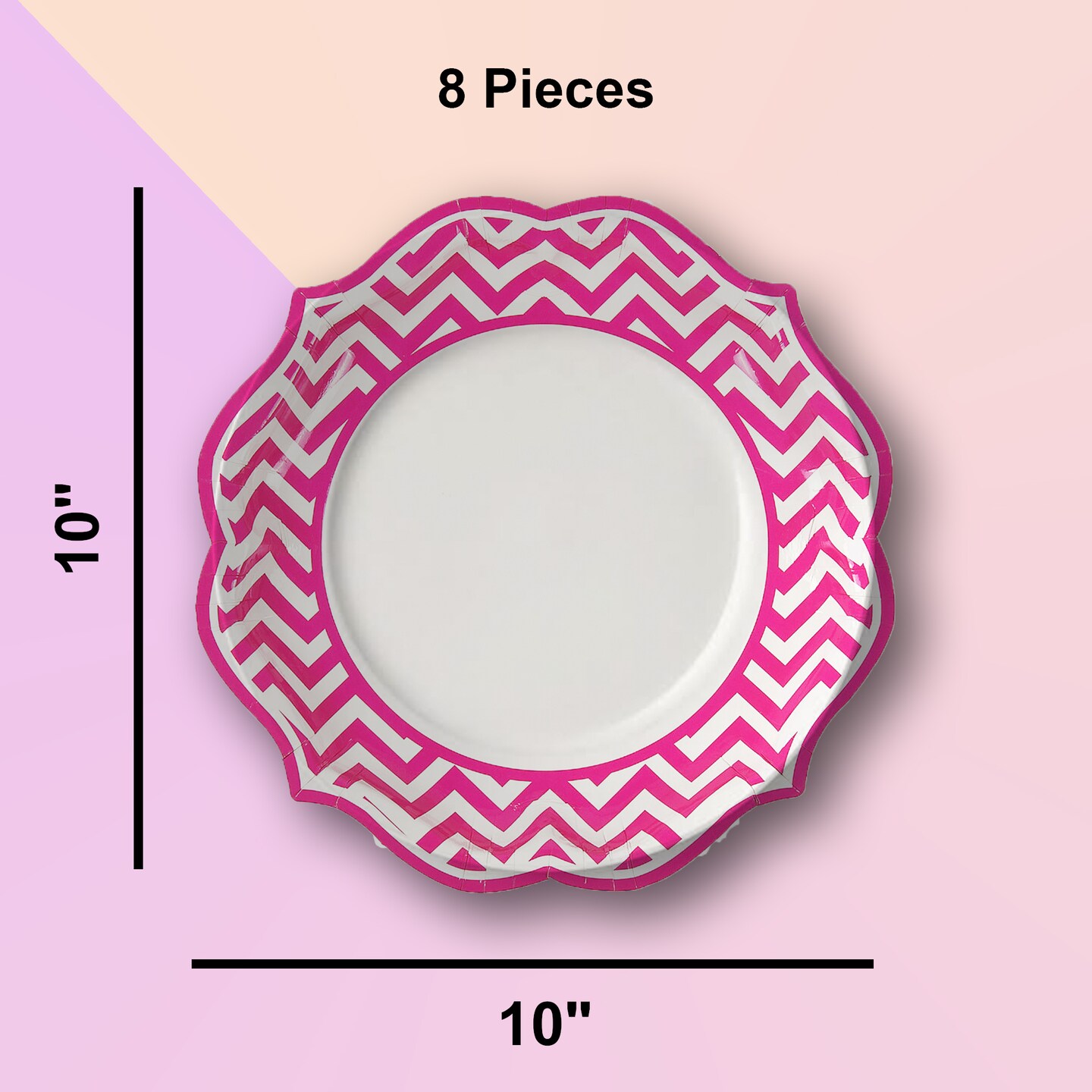 8 Ct.Chevron Zigzag Stripes Scalloped Paper Dinner Party Plates Elegant 10"