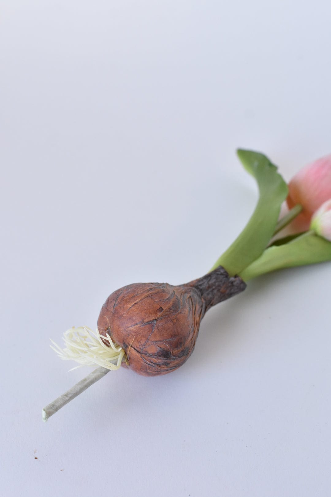 8" Faux Real Touch Soft Pink Tulips in Bulb w/pick