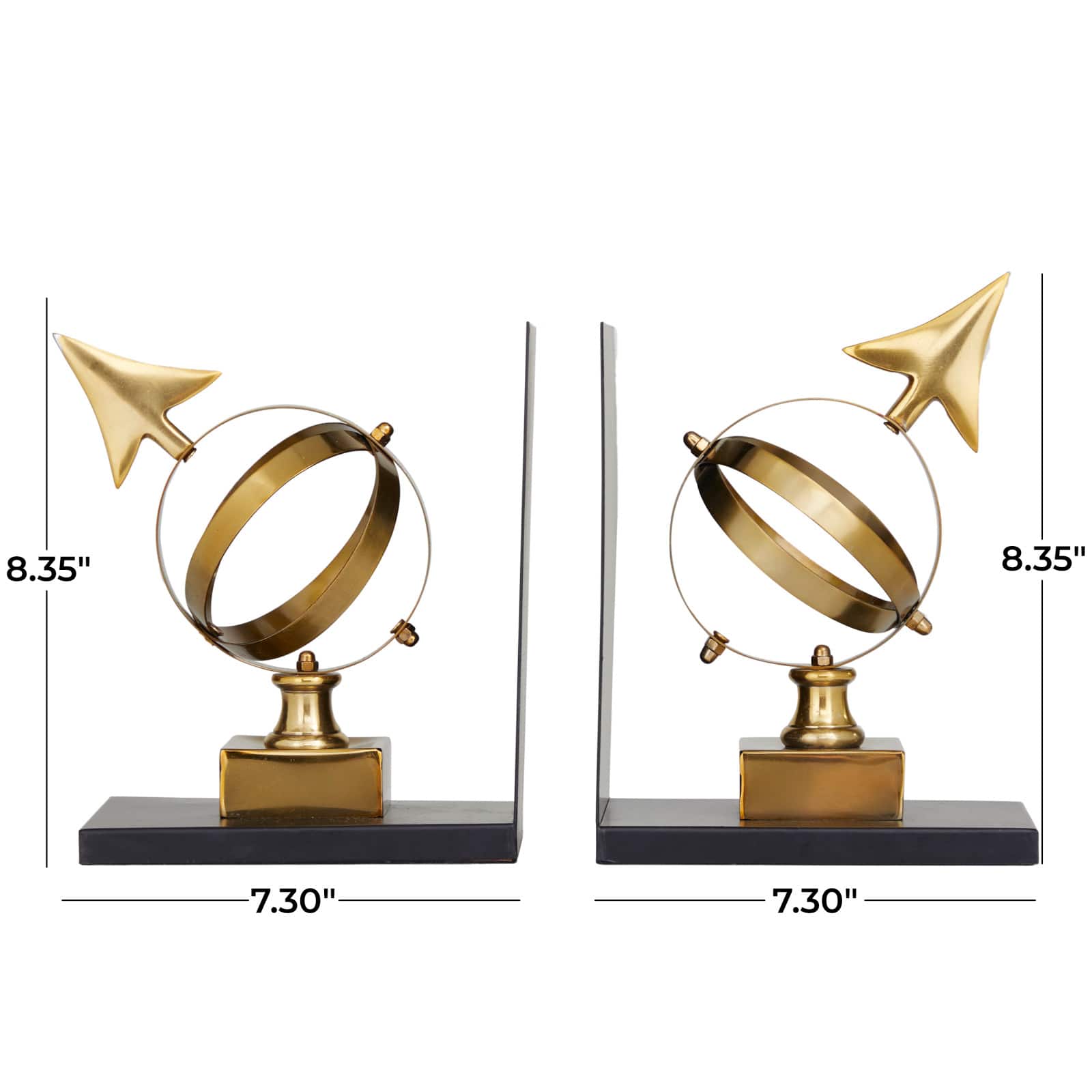 8" Gold Stainless Steel Armillary Bookends with Black Bases Set