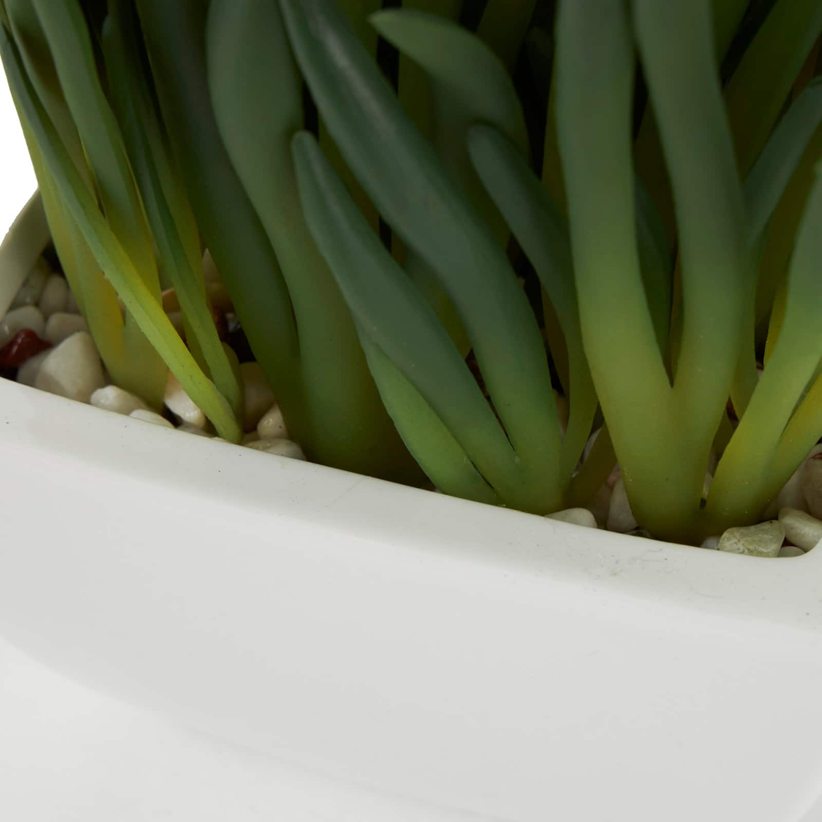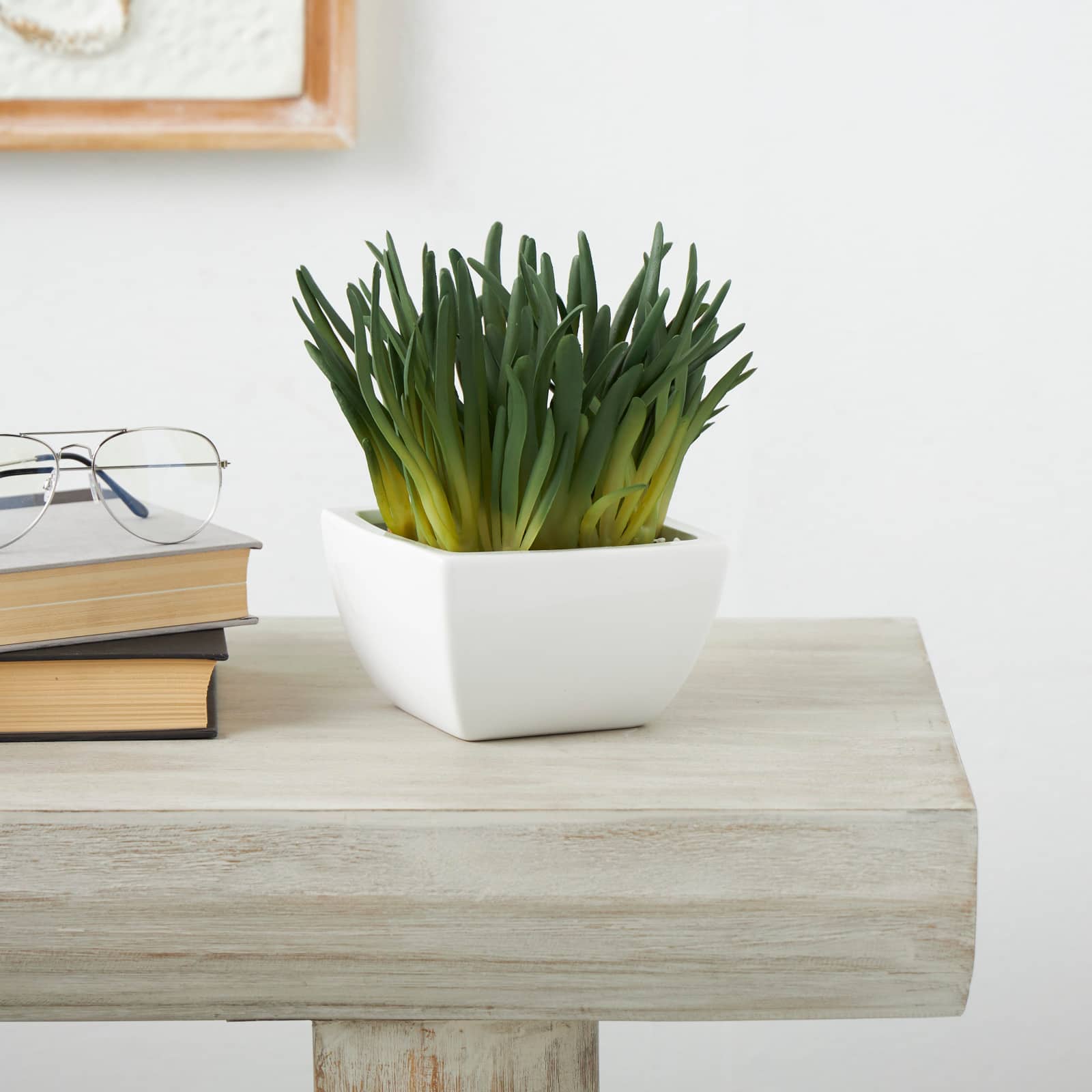 8" Green Foliage Artificial Plant with White Ceramic Pot
