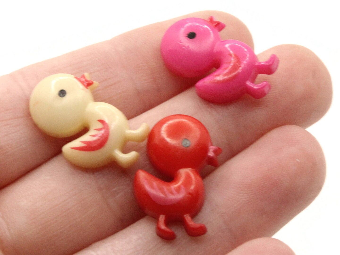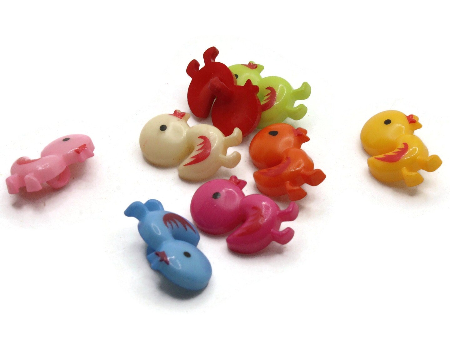 8 Multi-colored Duck Plastic Shank Buttons Mixed Color Animal Buttons
