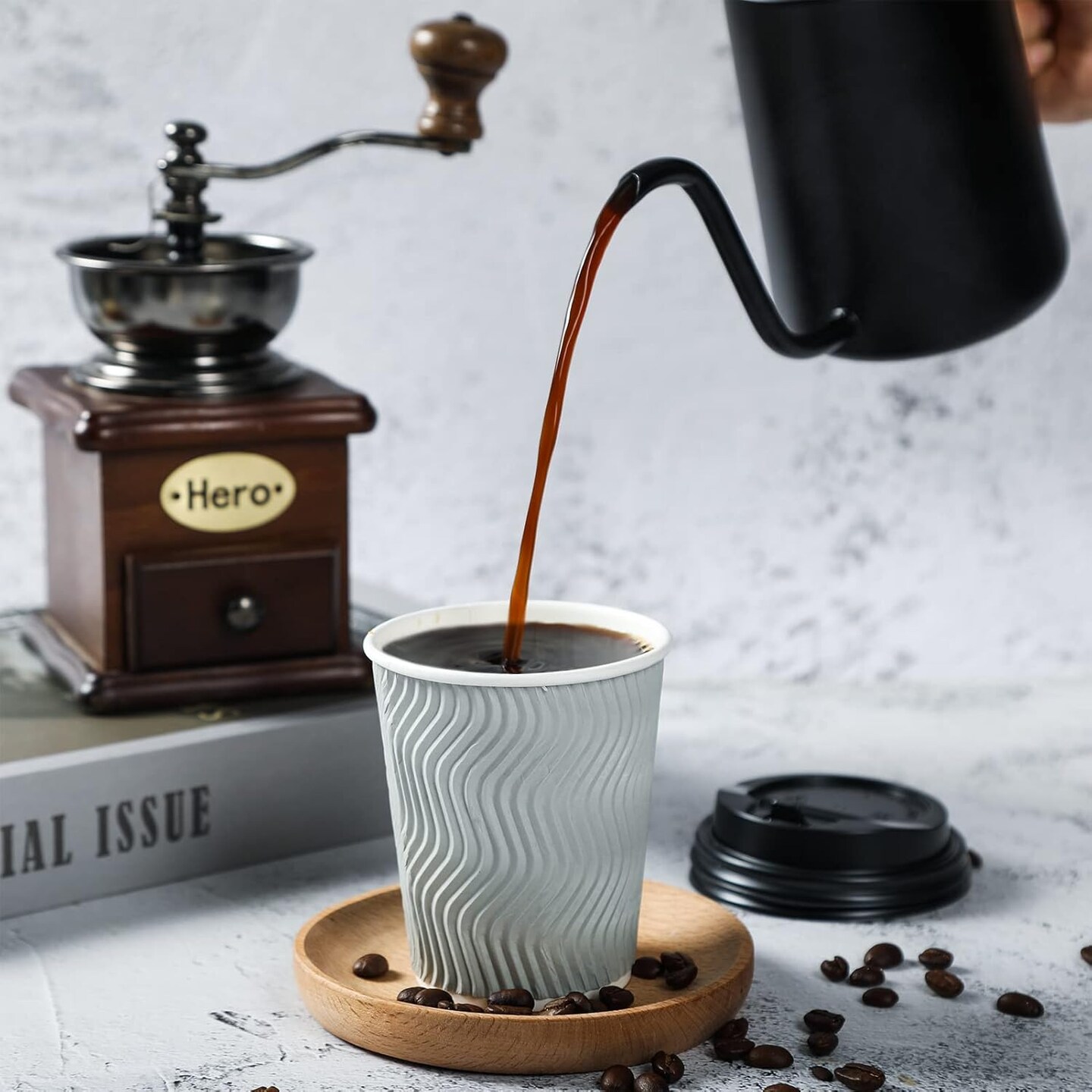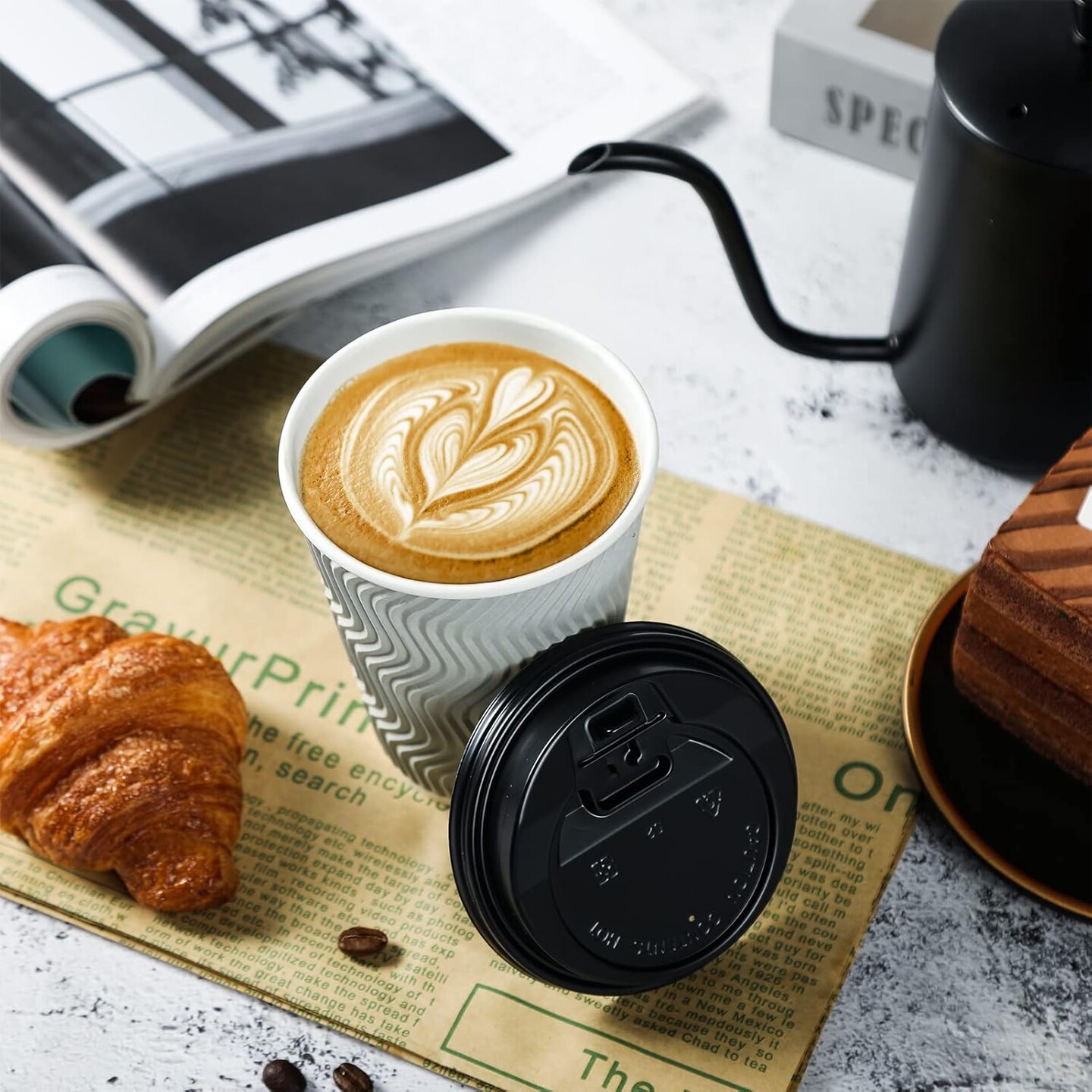 8 oz Disposable Coffee Cups, Paper Coffee Cups With Lids & Straws, 100 Count Insulated Ripple To Go Coffee Cups 8 oz for Tea, Hot Chocolate and Drinks