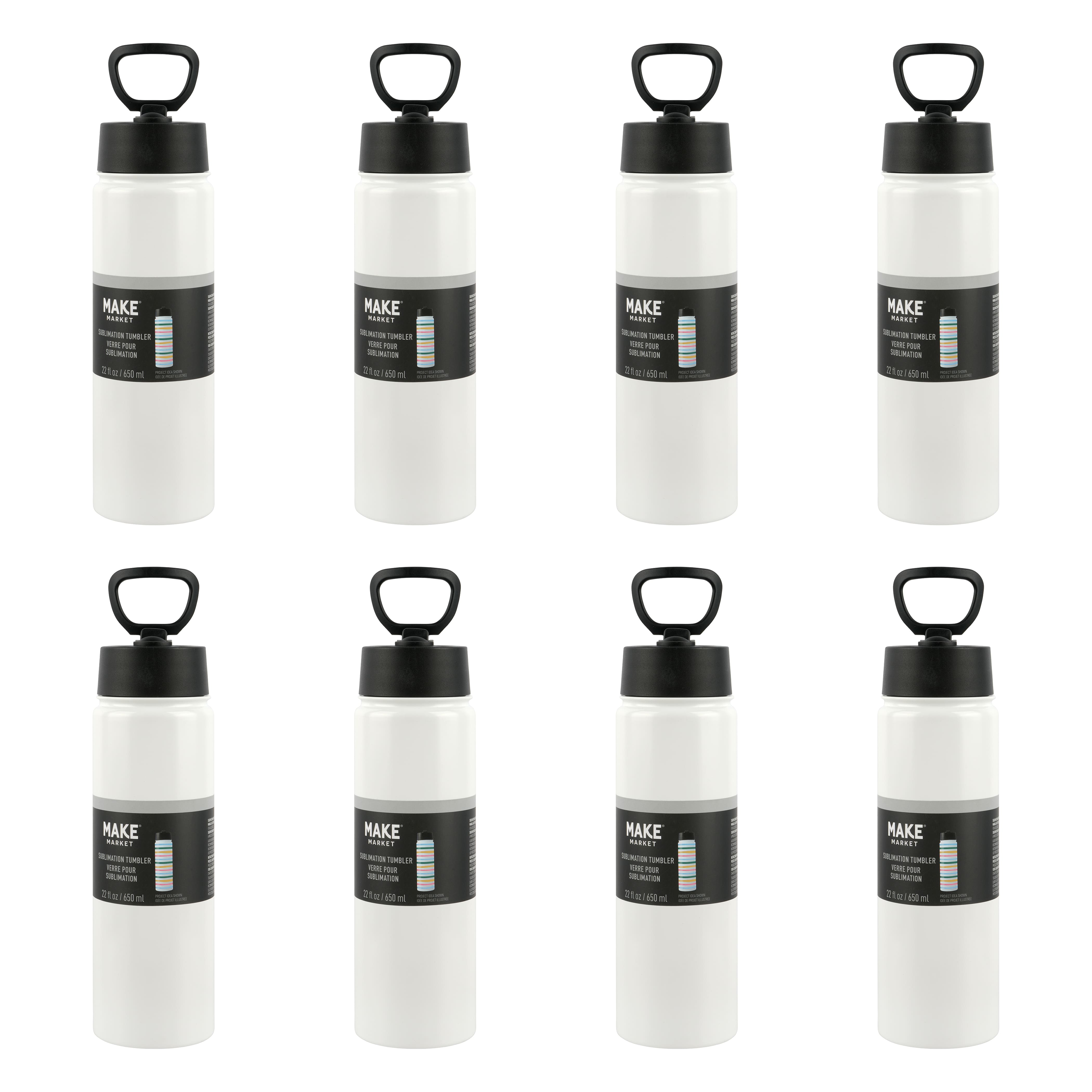 8 Pack: 22oz. White Stainless Steel Sublimation Water Bottle by Make Market®