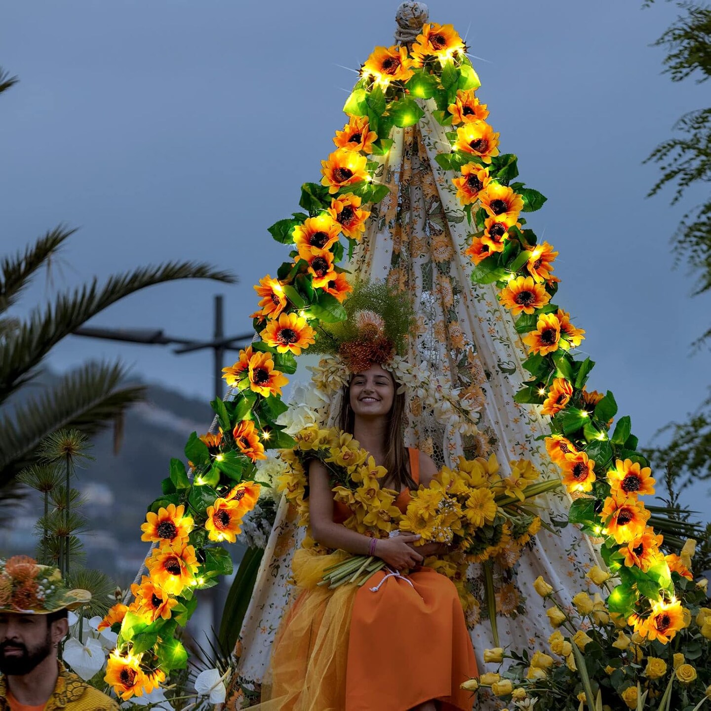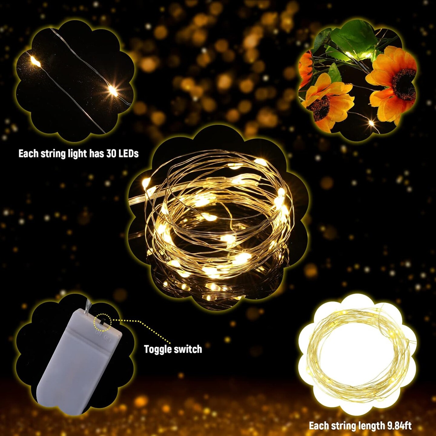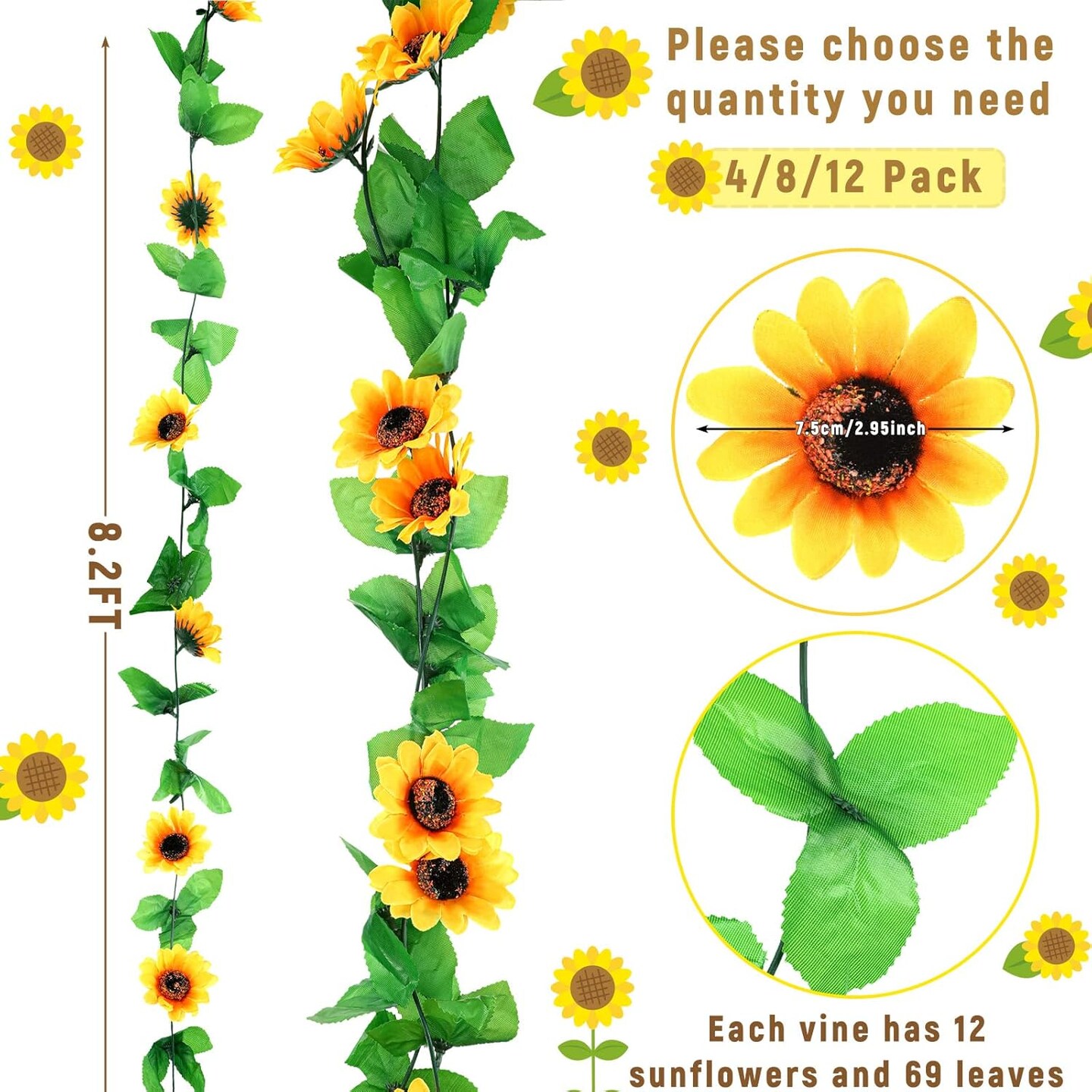 8 Pack 8.2 Ft 30 LED Light Artificial Sunflower Vines Faux Hanging Garland(Yellow)