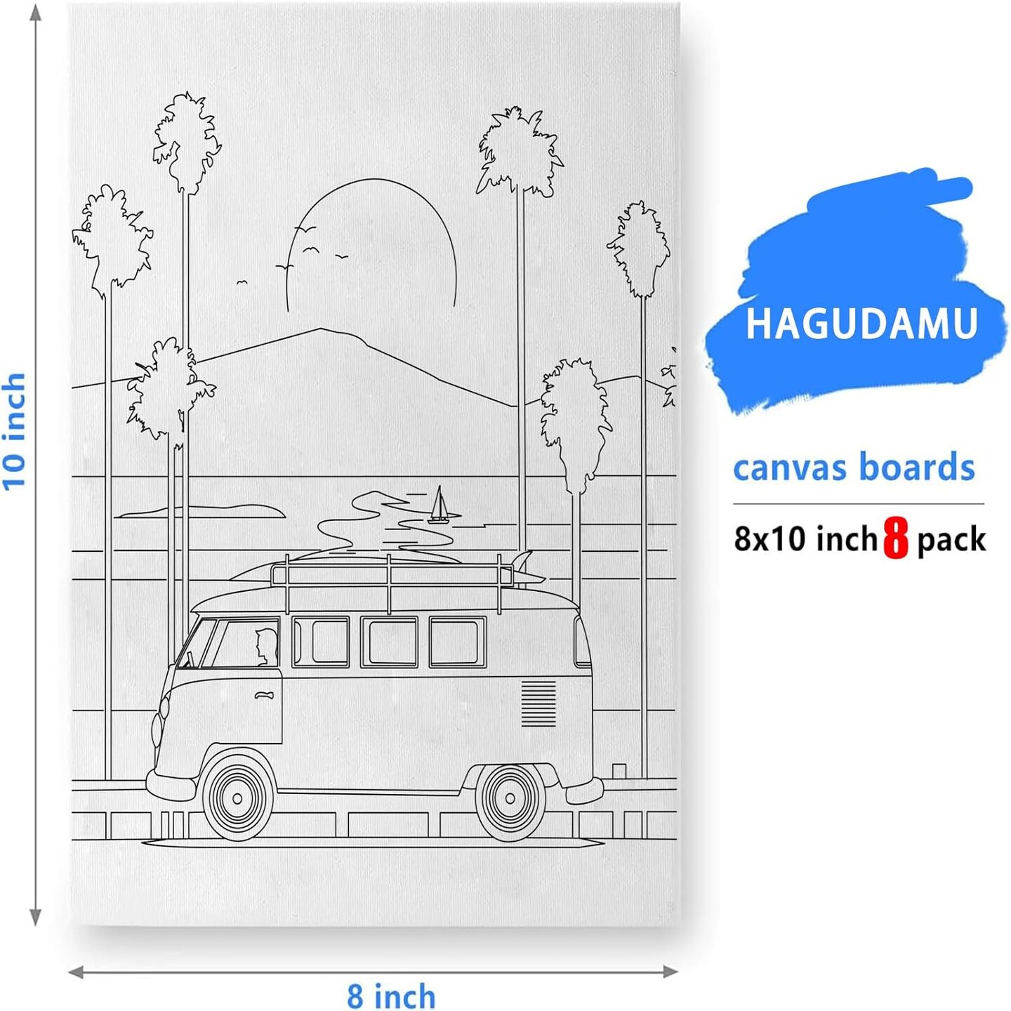 8 Pack (8x10) Pre Drawn Canvas Boards, Canvas Painting Set for Adults