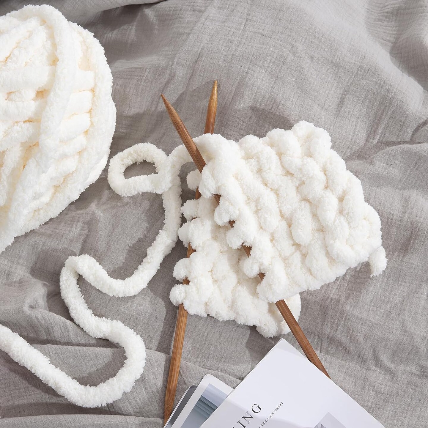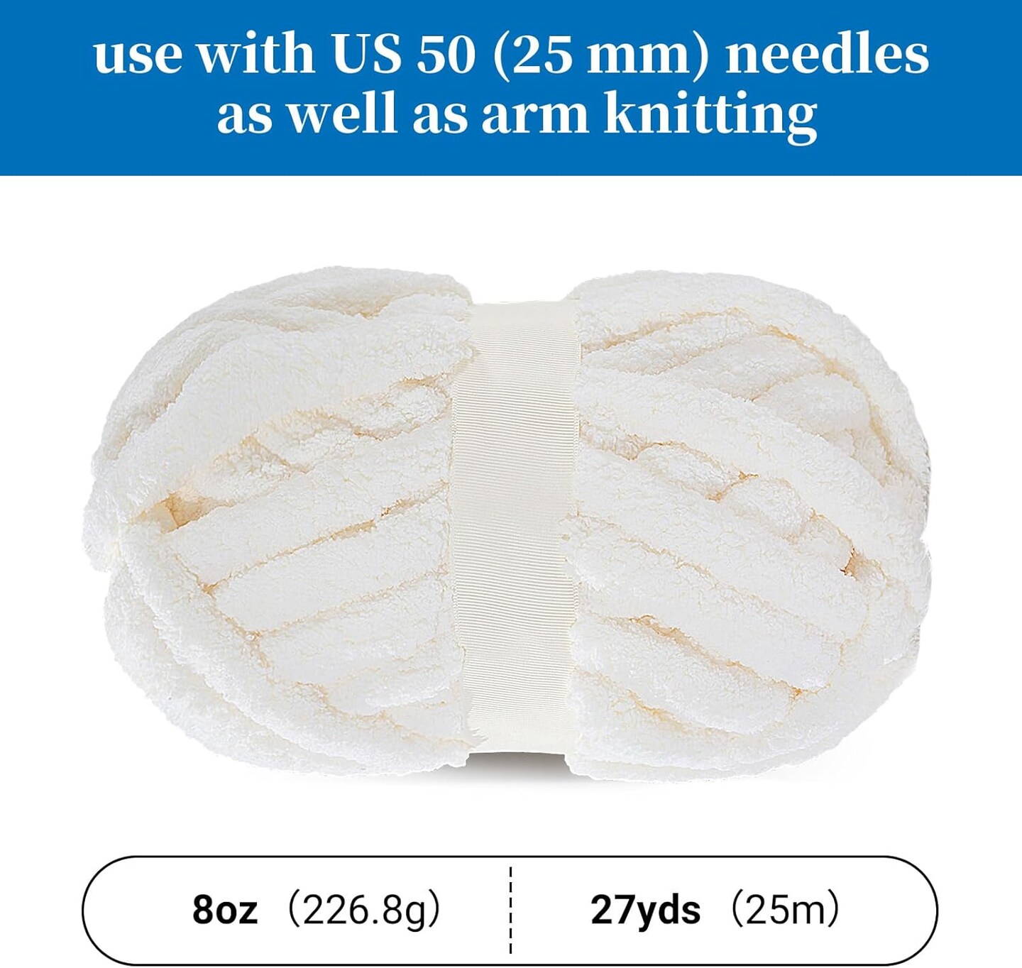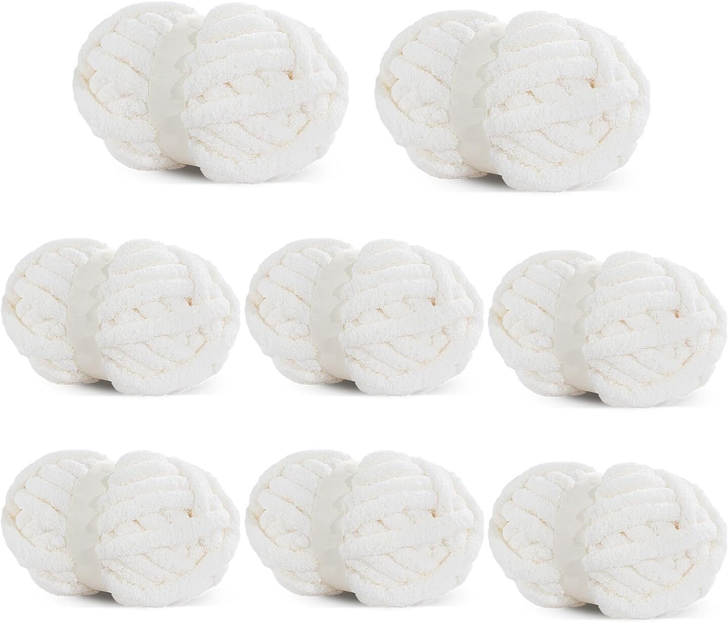 8 Pack Chunky Chenille Yarn for Crocheting & Knitting(White)