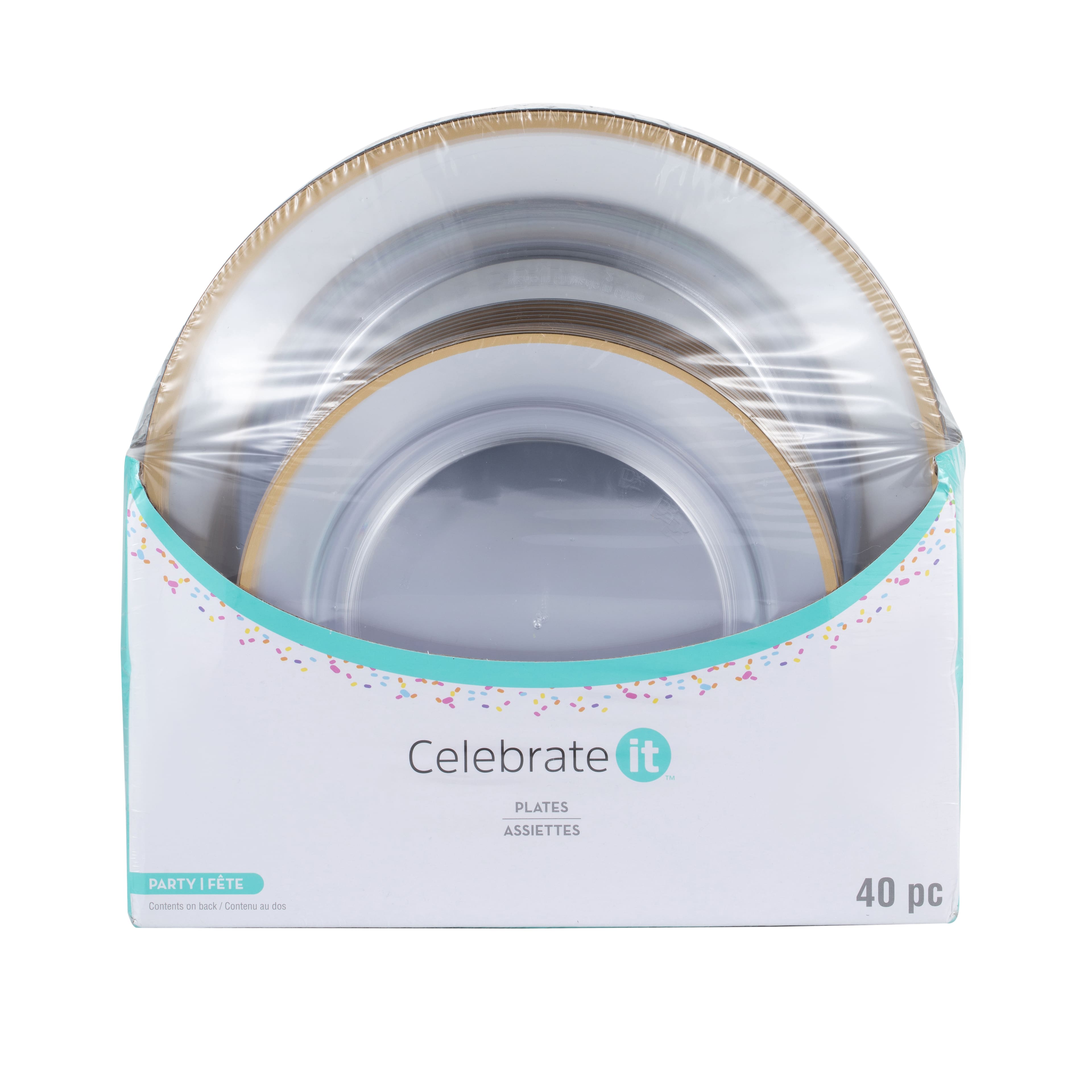 8 Pack: Clear & Gold 40 Piece Dinner & Lunch Plate Set by Celebrate It™