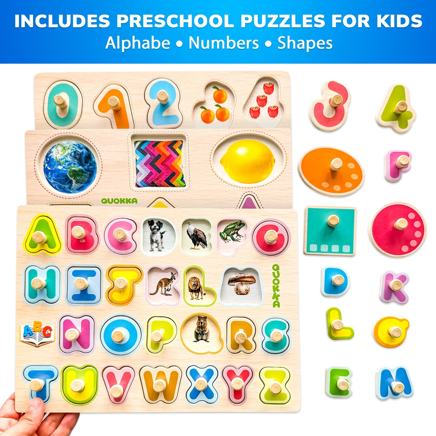 8 Pack Rack Wooden Puzzles for Toddlers| ABC, Numbers & Animals