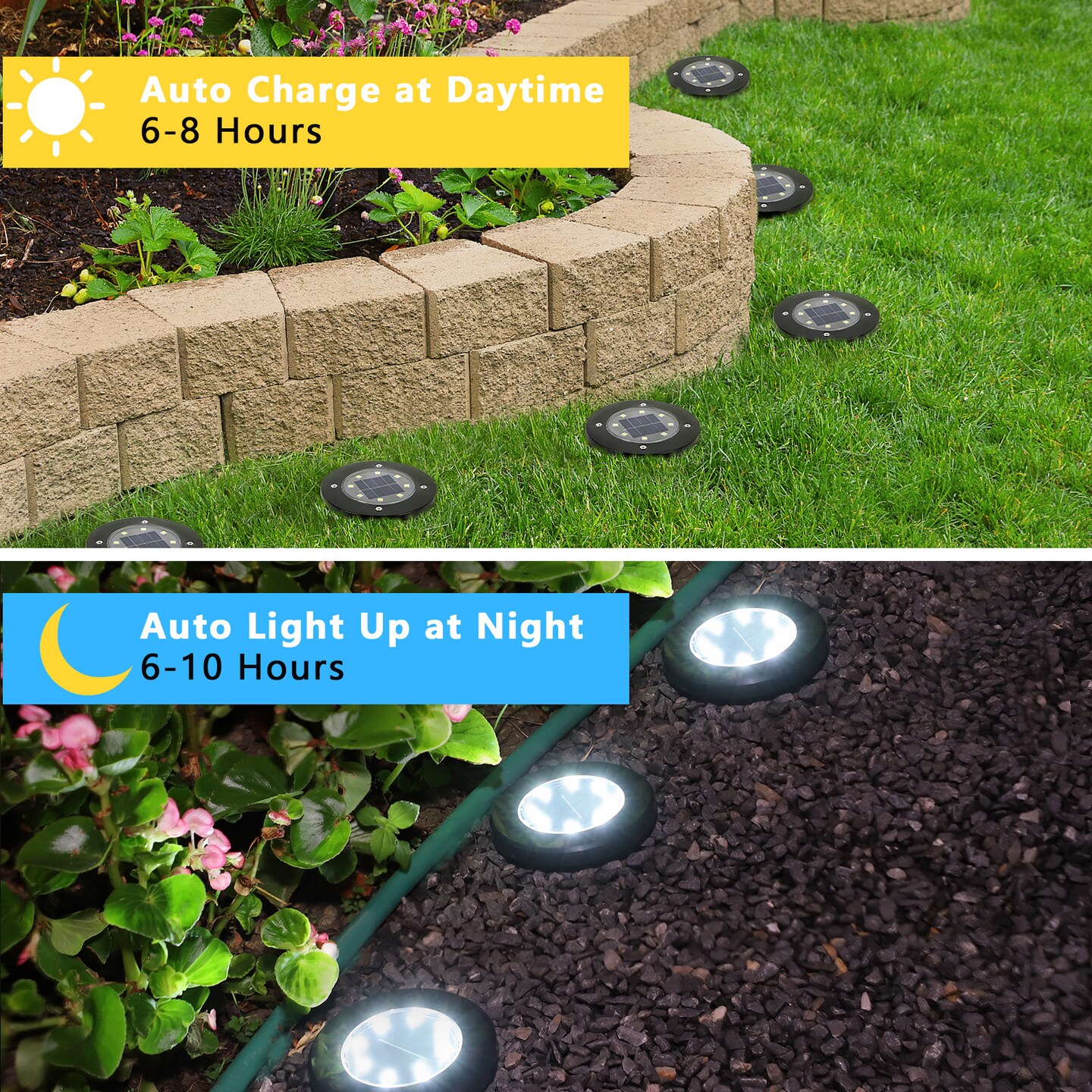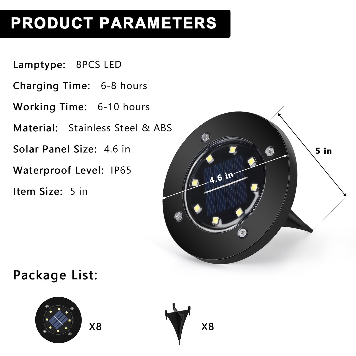 8 Pack Solar Ground Lights, 8 LED IP65 Waterproof In-Ground Outdoor Lights for Garden Pathway