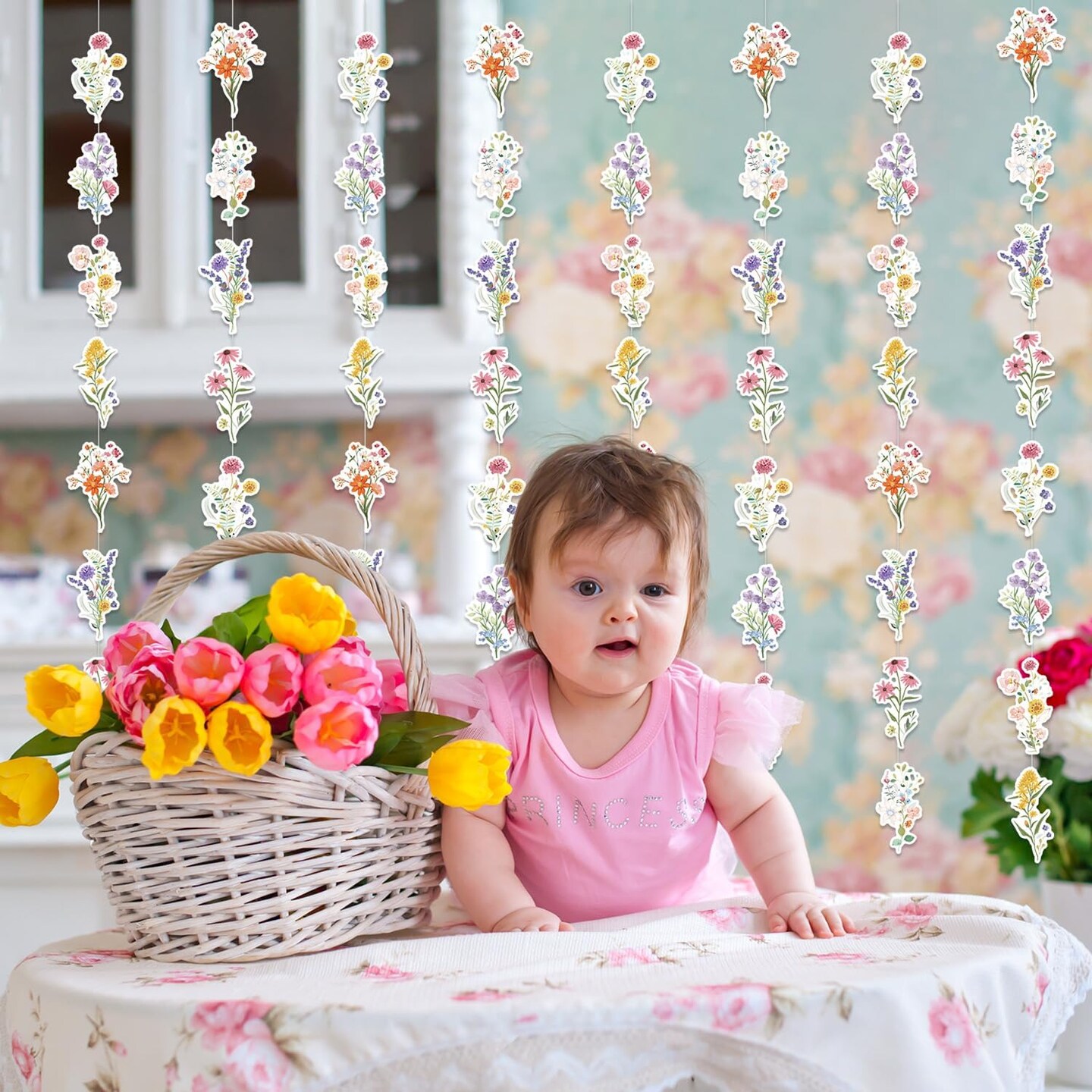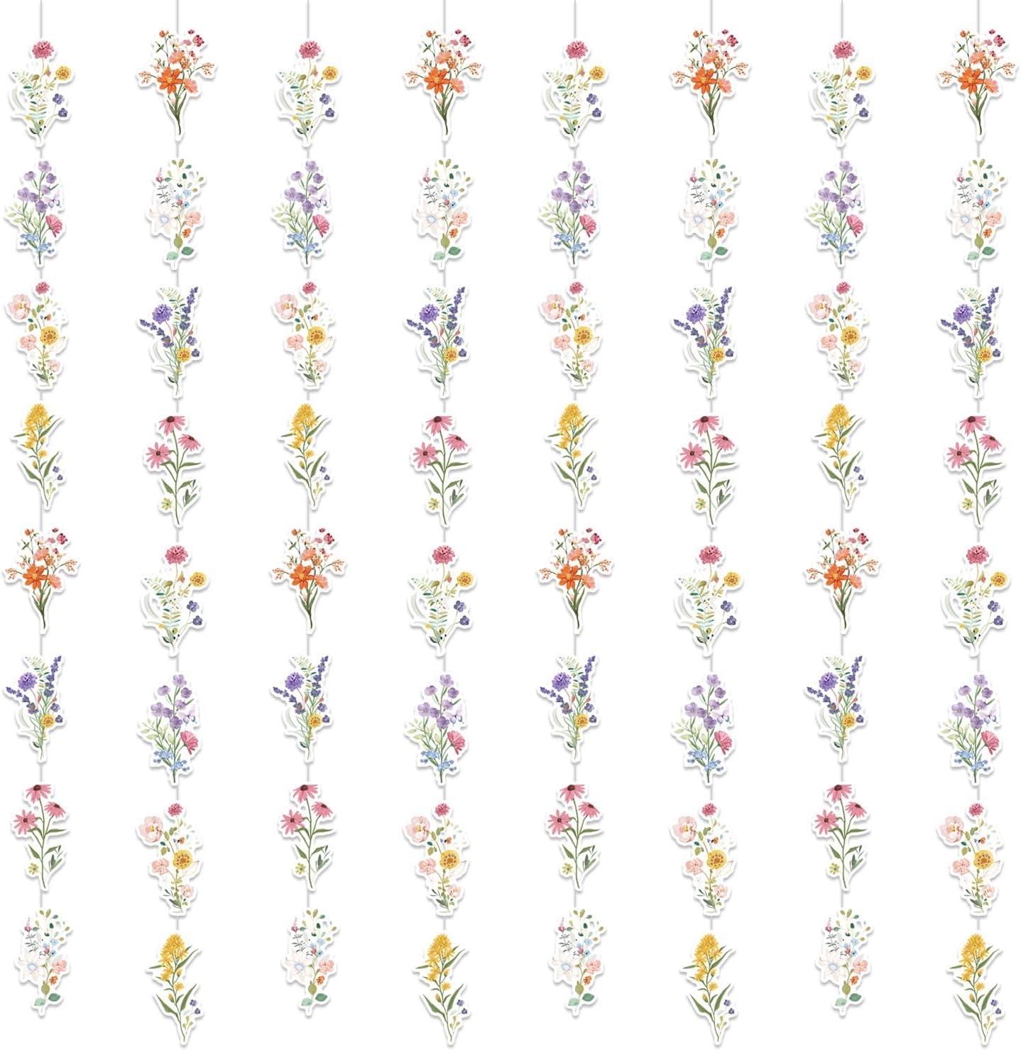 8 Pack Wildflower Paper Hanging Garlands – Floral Decorations for Birthday, Baby & Bridal Shower, Girls & Women’s Party, Spring/Summer Wedding & Ceiling Décor