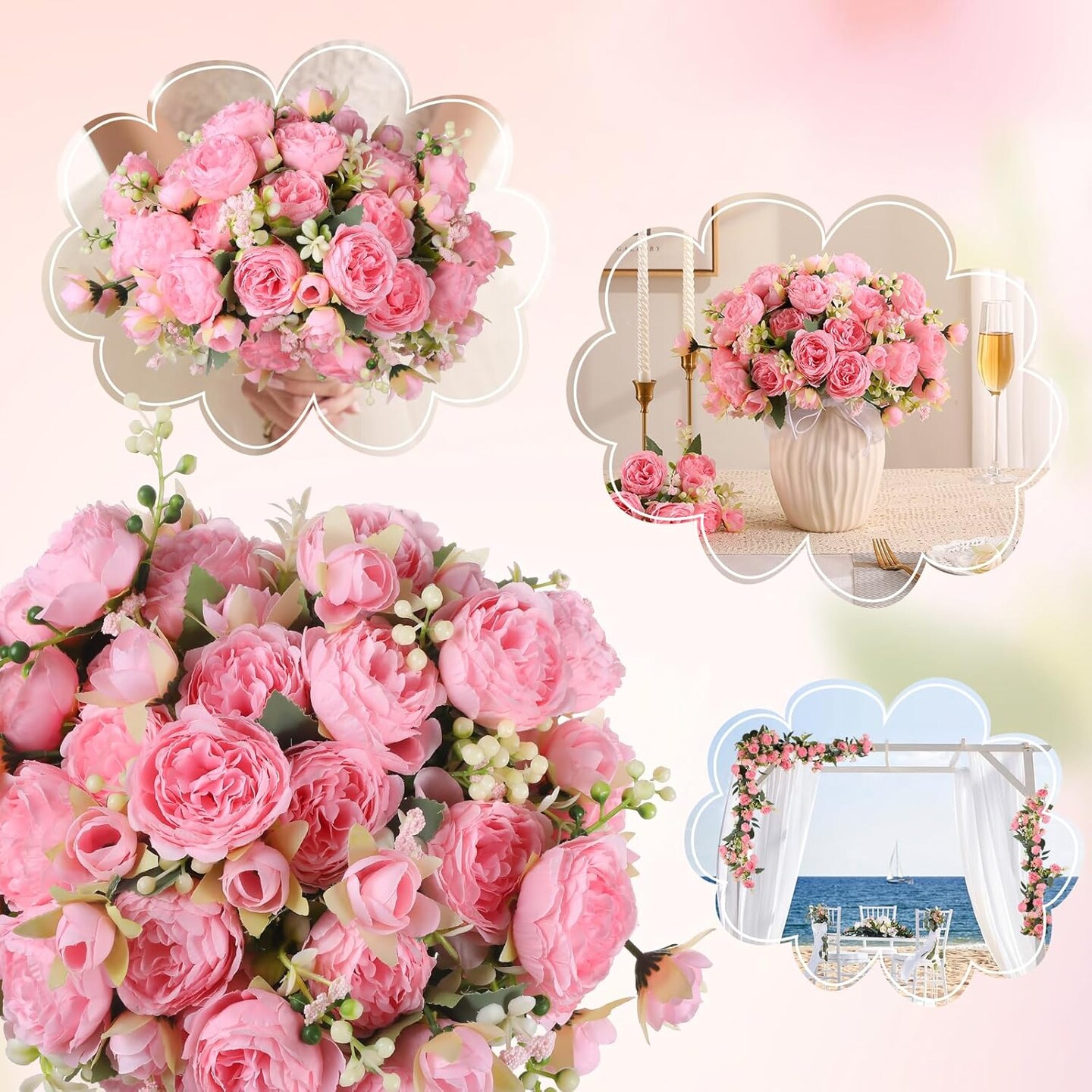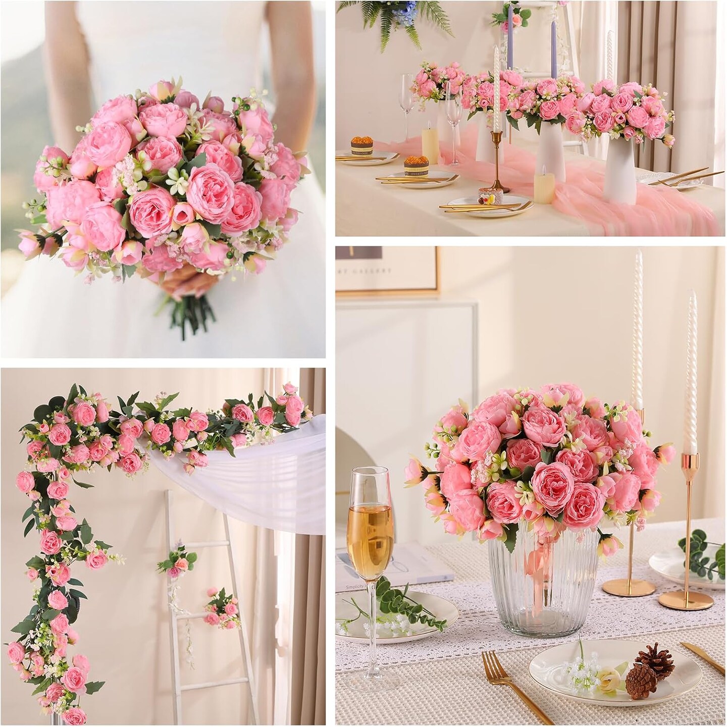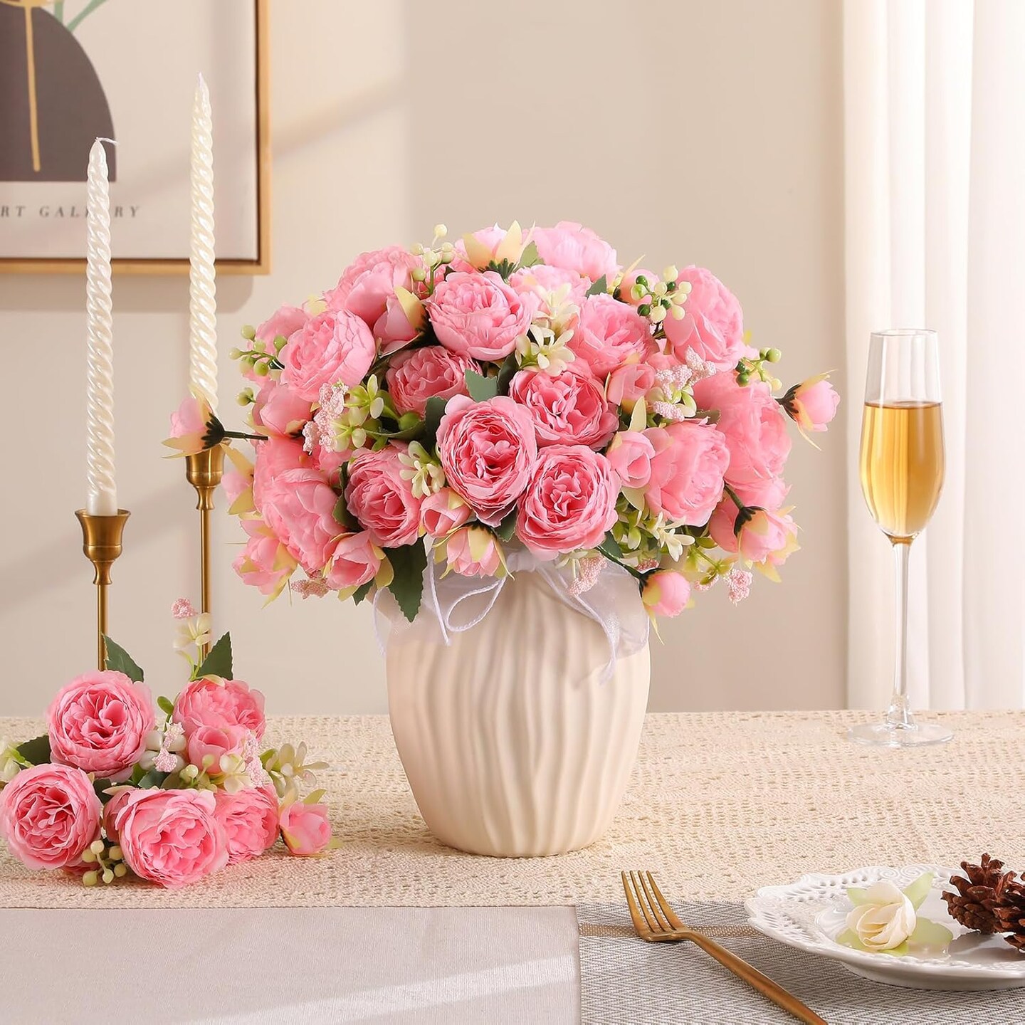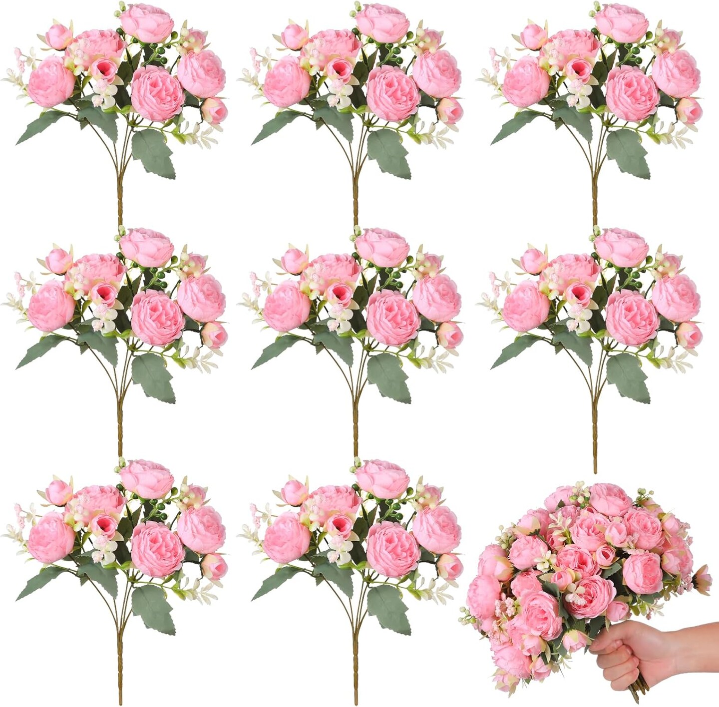 8 Packs Peonies Artificial Flowers Vintage Faux Peony Bouquet Fake Flower for Vase Silk Floral Arrangements for Table Centerpiece Wedding Decoration Indoor Home Decor