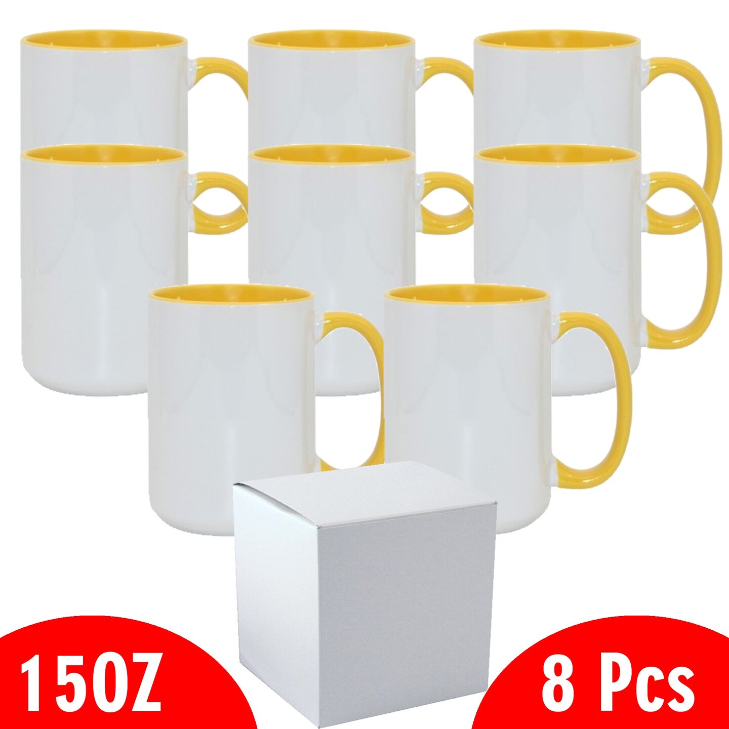 8 Pcs 15OZ El Grande Yellow Inside & Handle Sublimation Mugs With Foam Support Boxes