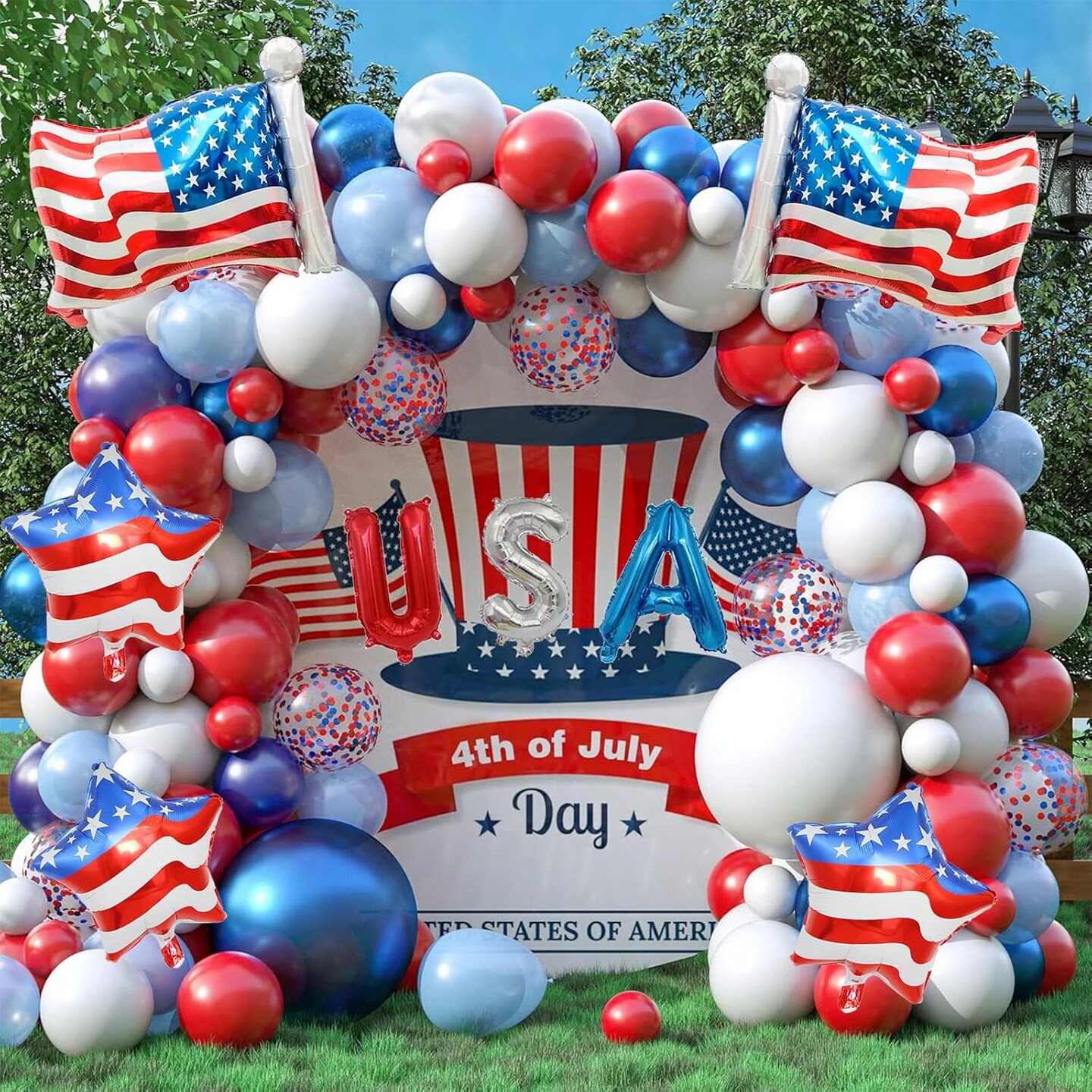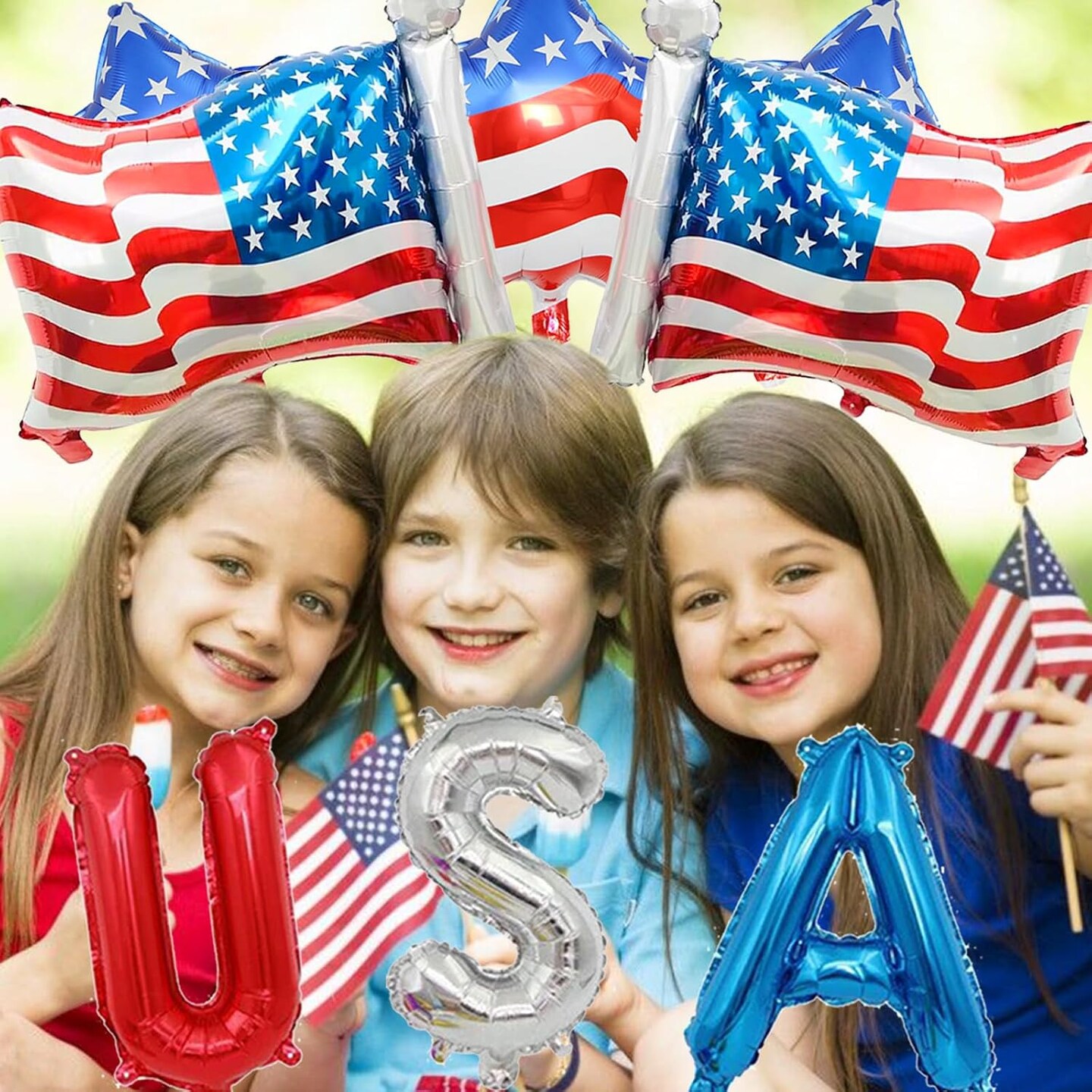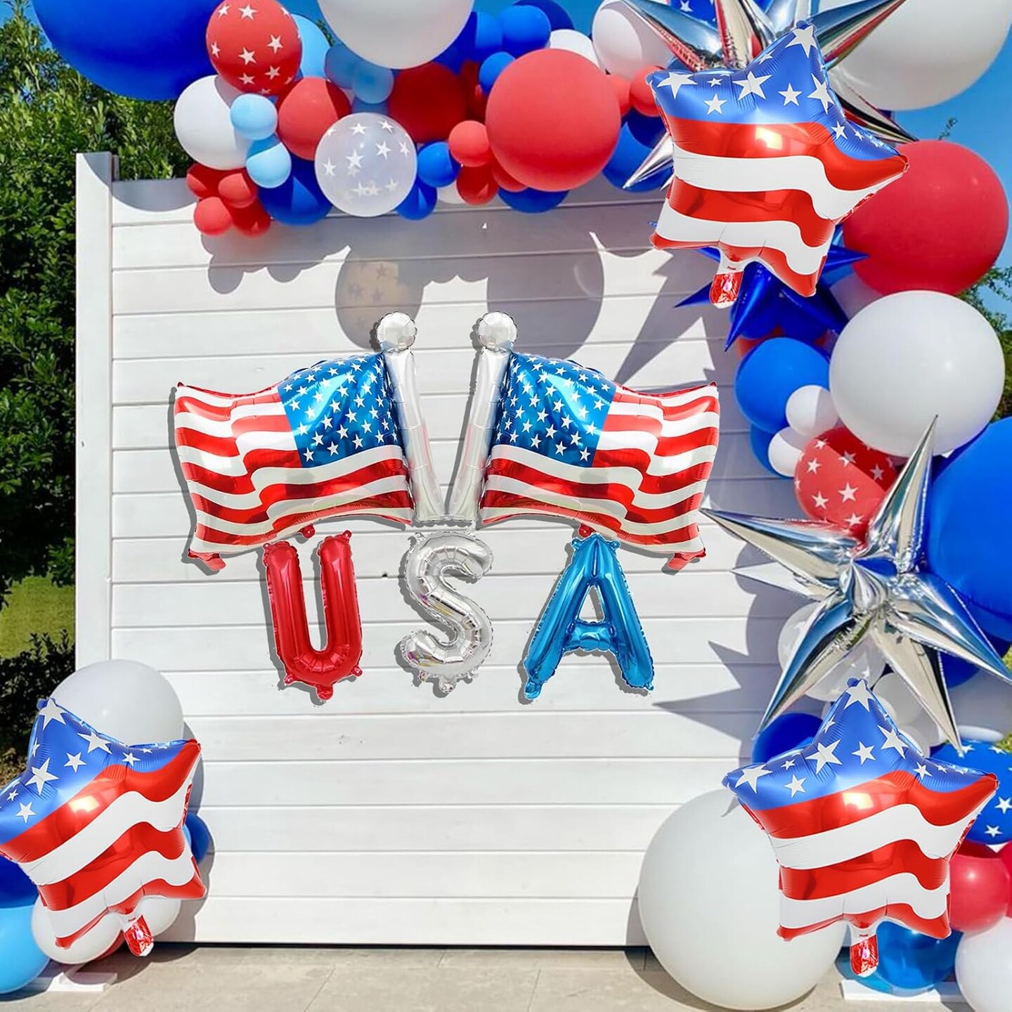 8 Pcs 4th of July Balloons American Flag Star Balloons USA Balloon Red White and Blue Foil Balloon