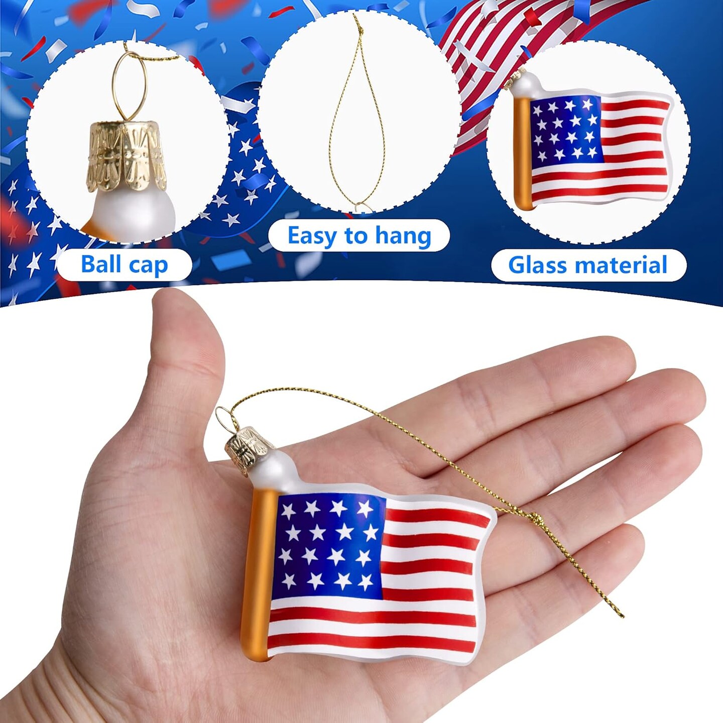 8 PCS American Flag Glass Ornaments -4th of July Tree Glass Hanging Decorations
