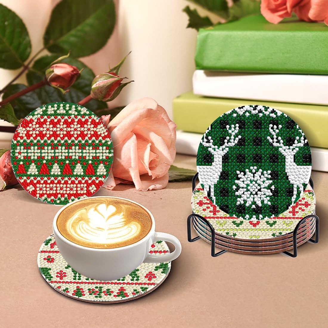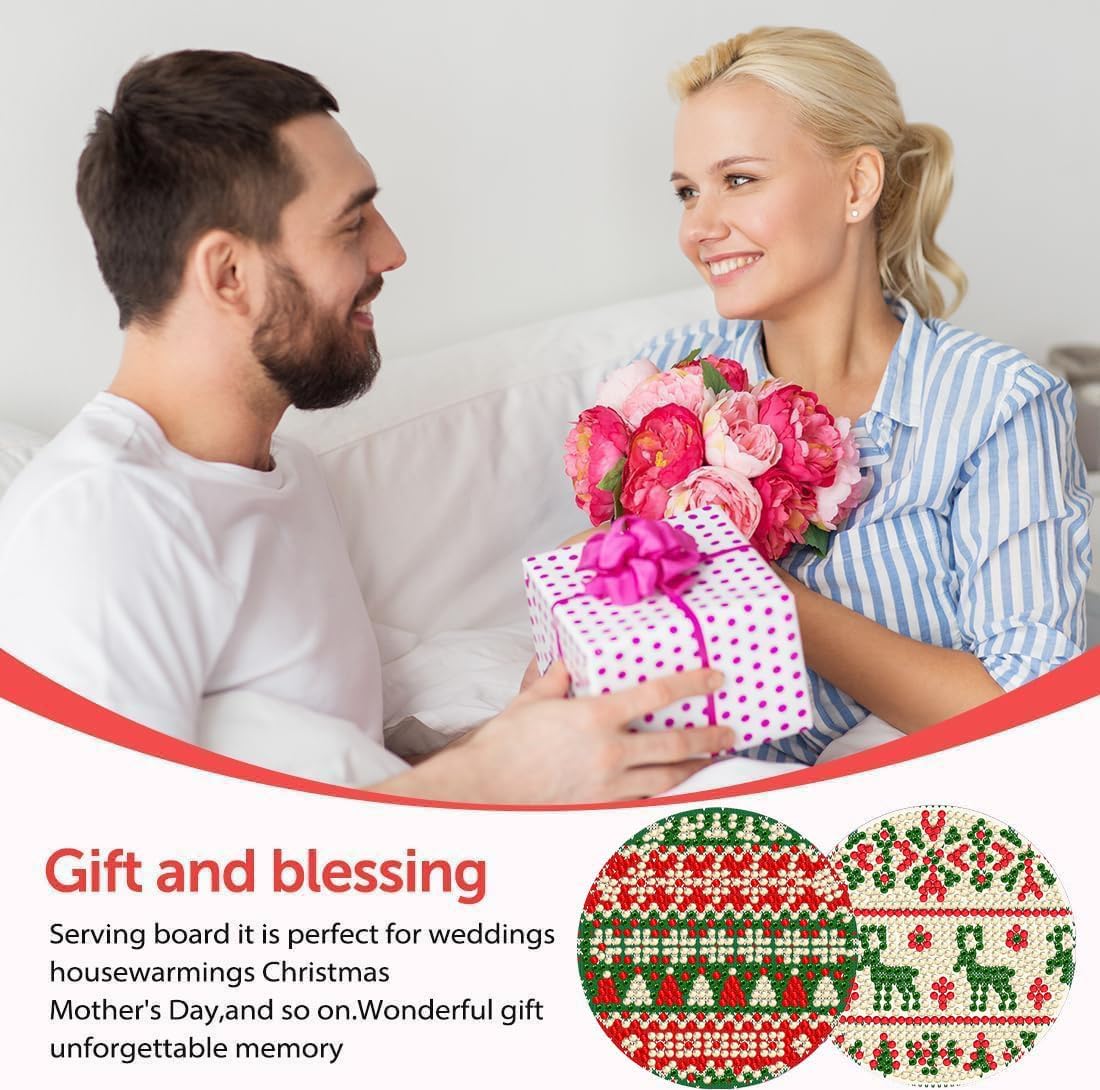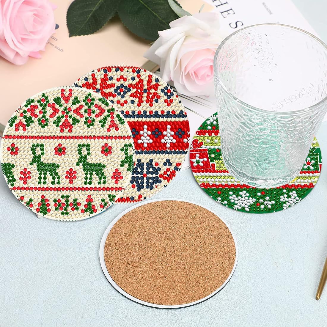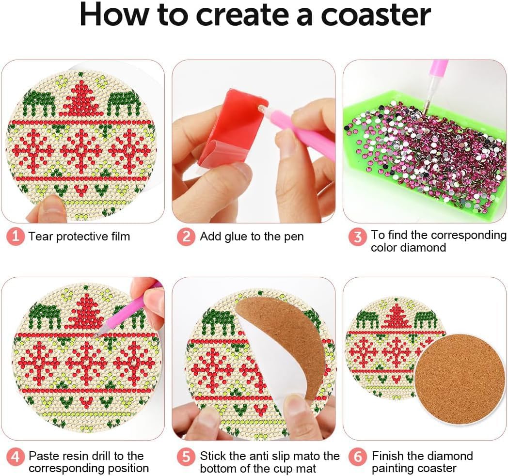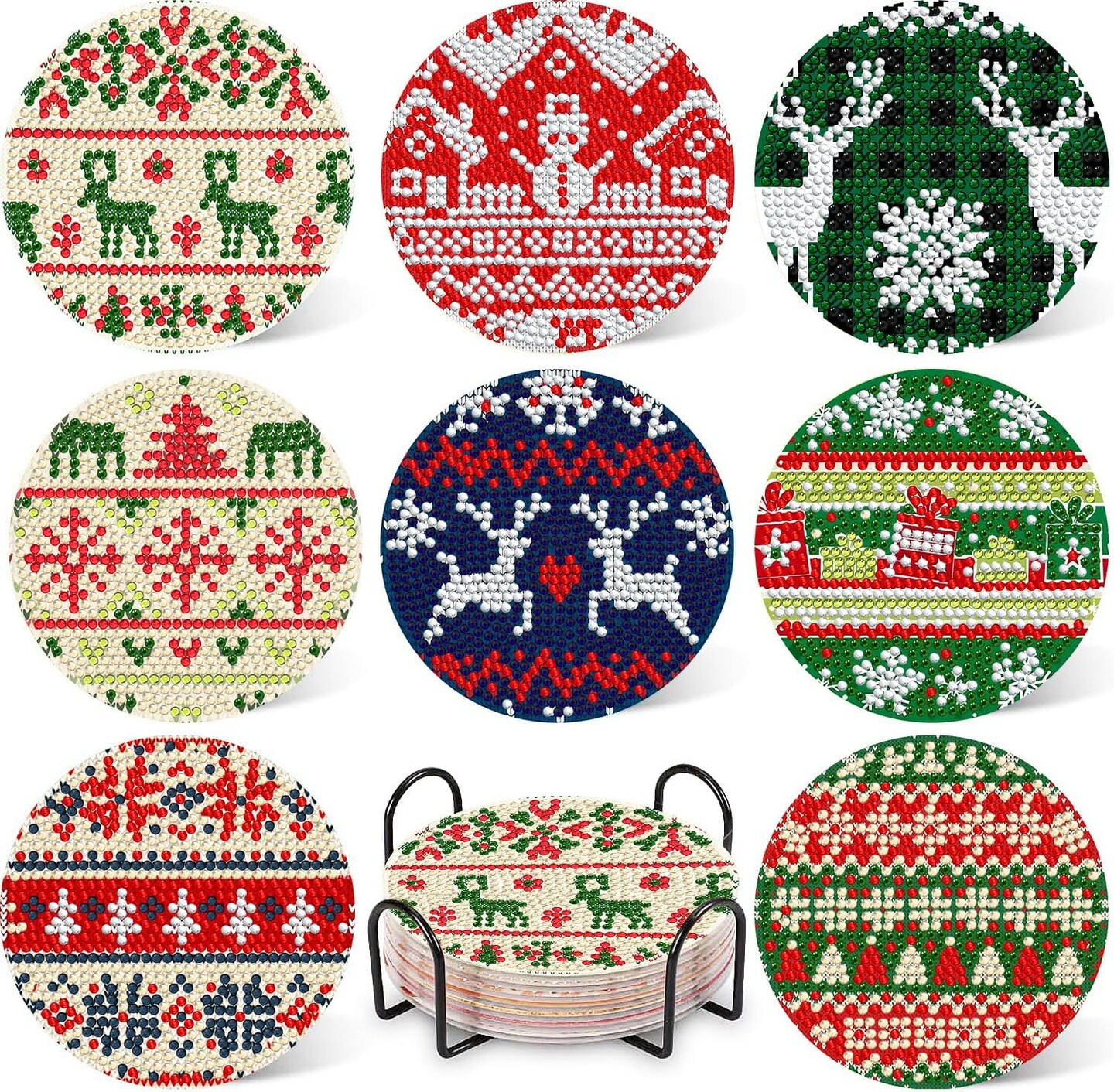8 Pcs Christmas Diamond Painting Coasters with Holder