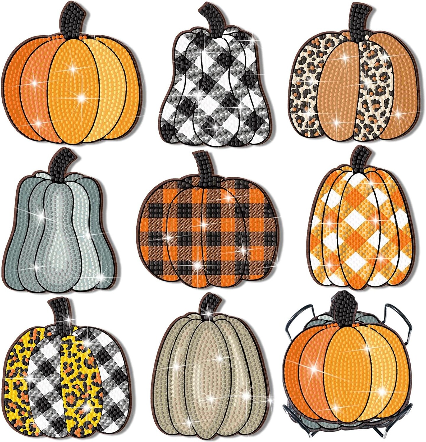 8 Pcs Fall Pumpkin Diamond Art Painting Coasters Kits