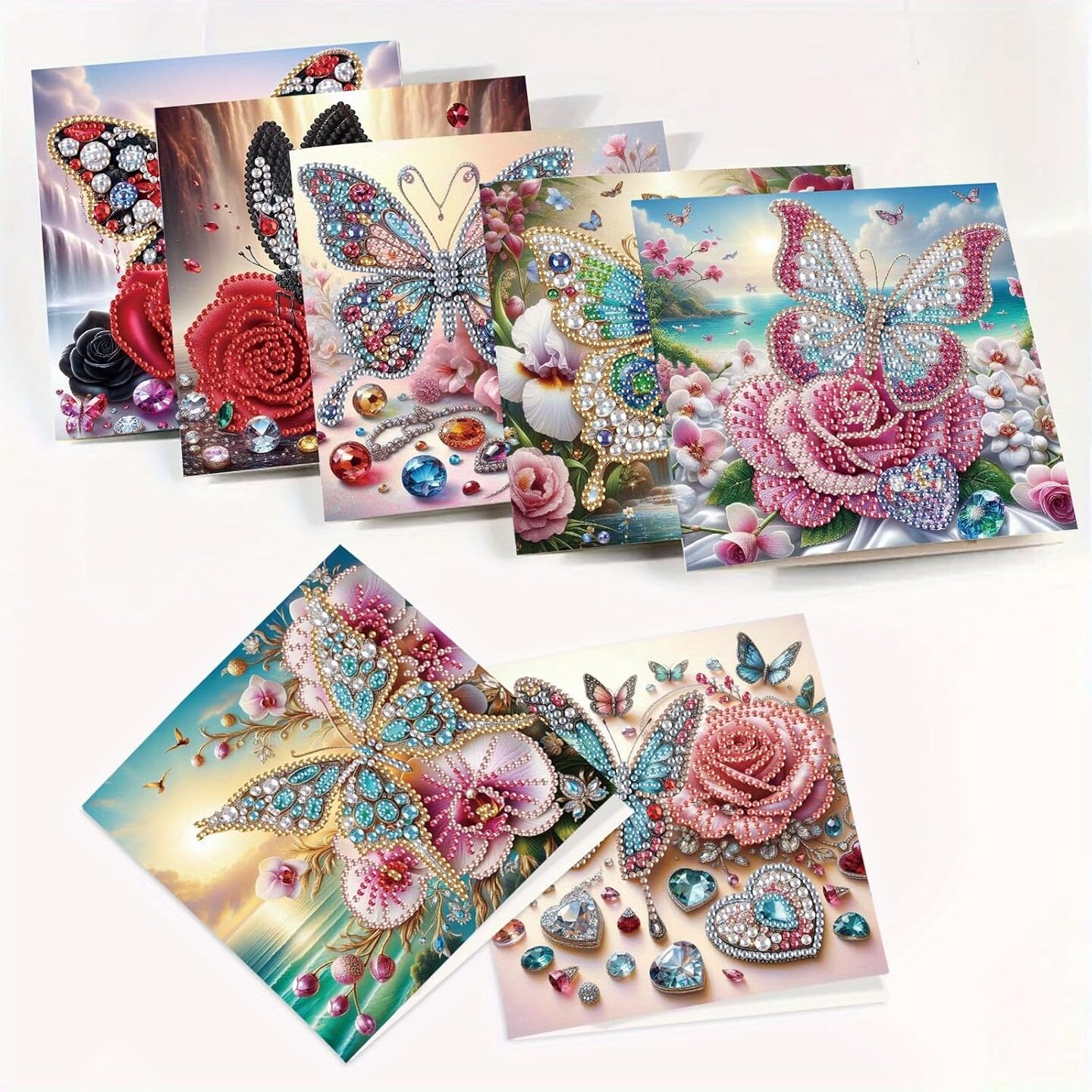 8 Pcs Flower Butterfly Diamond Art Painting Greeting Cards – 5D DIY Special Shape Diamond Painting Cards for Christmas, Birthday, Mother's Day, Father's Day, Teacher’s Day – Creative Handmade Gifts
