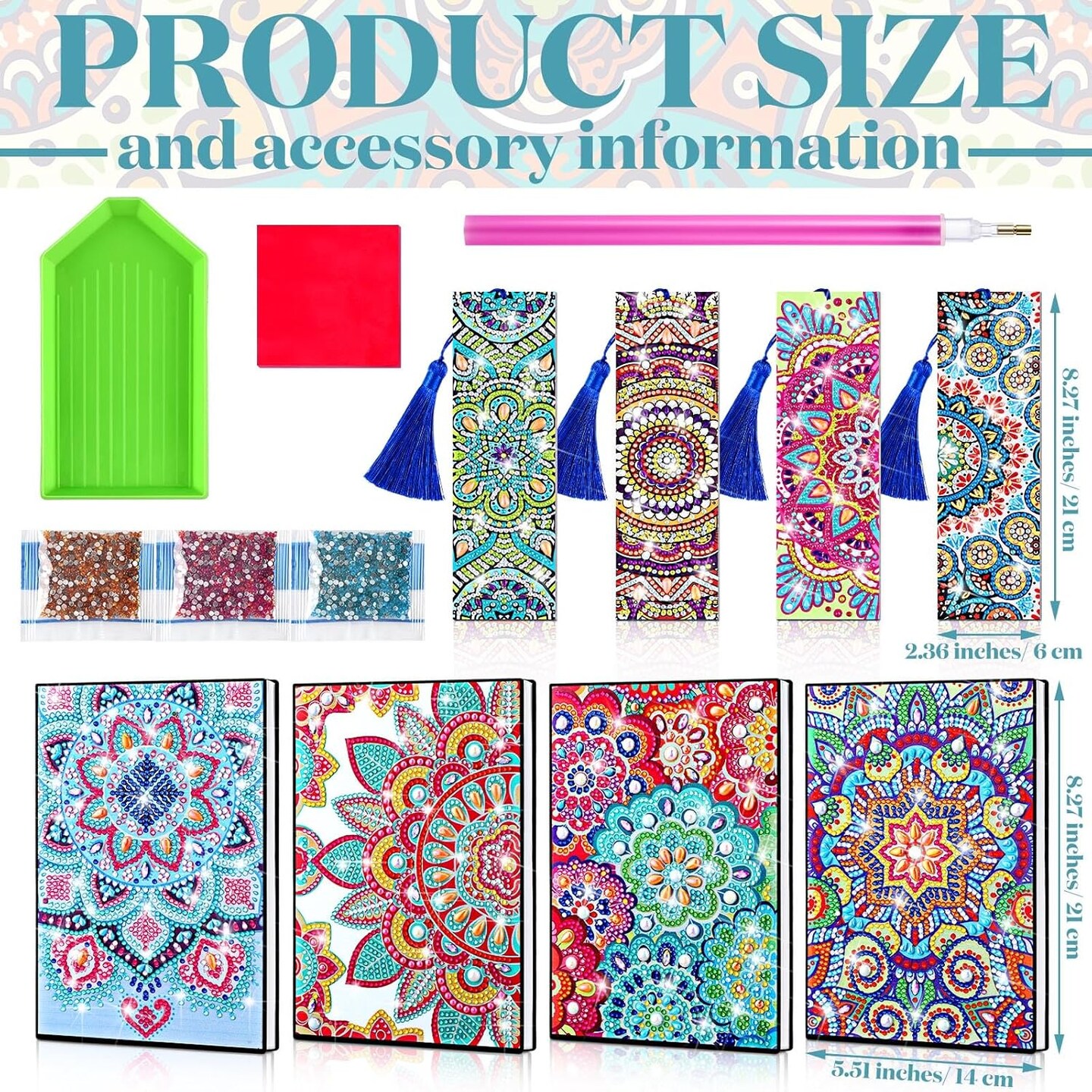 8 Pcs Mandala Diamond Art Set – Back-to-School DIY Journals & Bookmarks with Tools, Perfect Gifts for Classmates, Friends, and Teachers