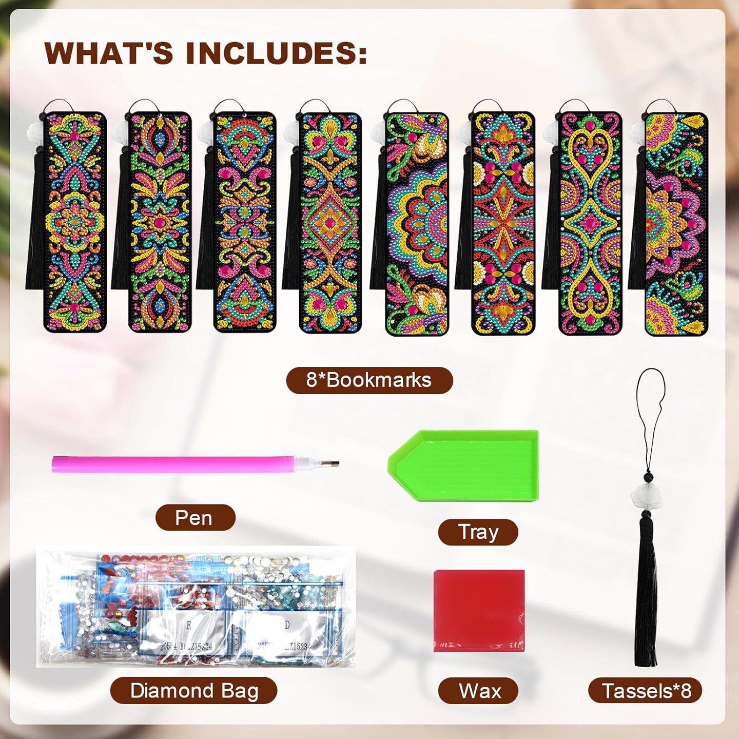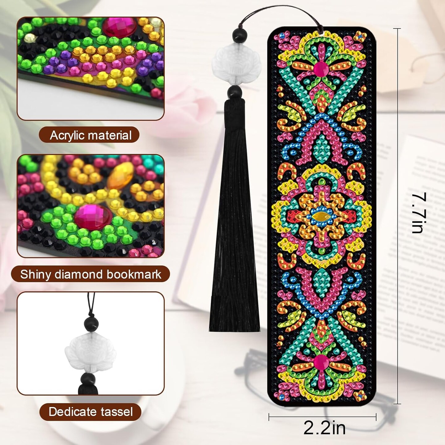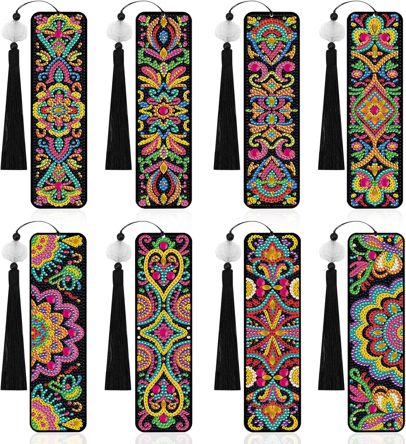 8 Pcs Mandala Diamond Painting Bookmarks Kit – DIY 5D Gem Art Book Marks with Tassels for Adults, Creative Craft for Book Lovers