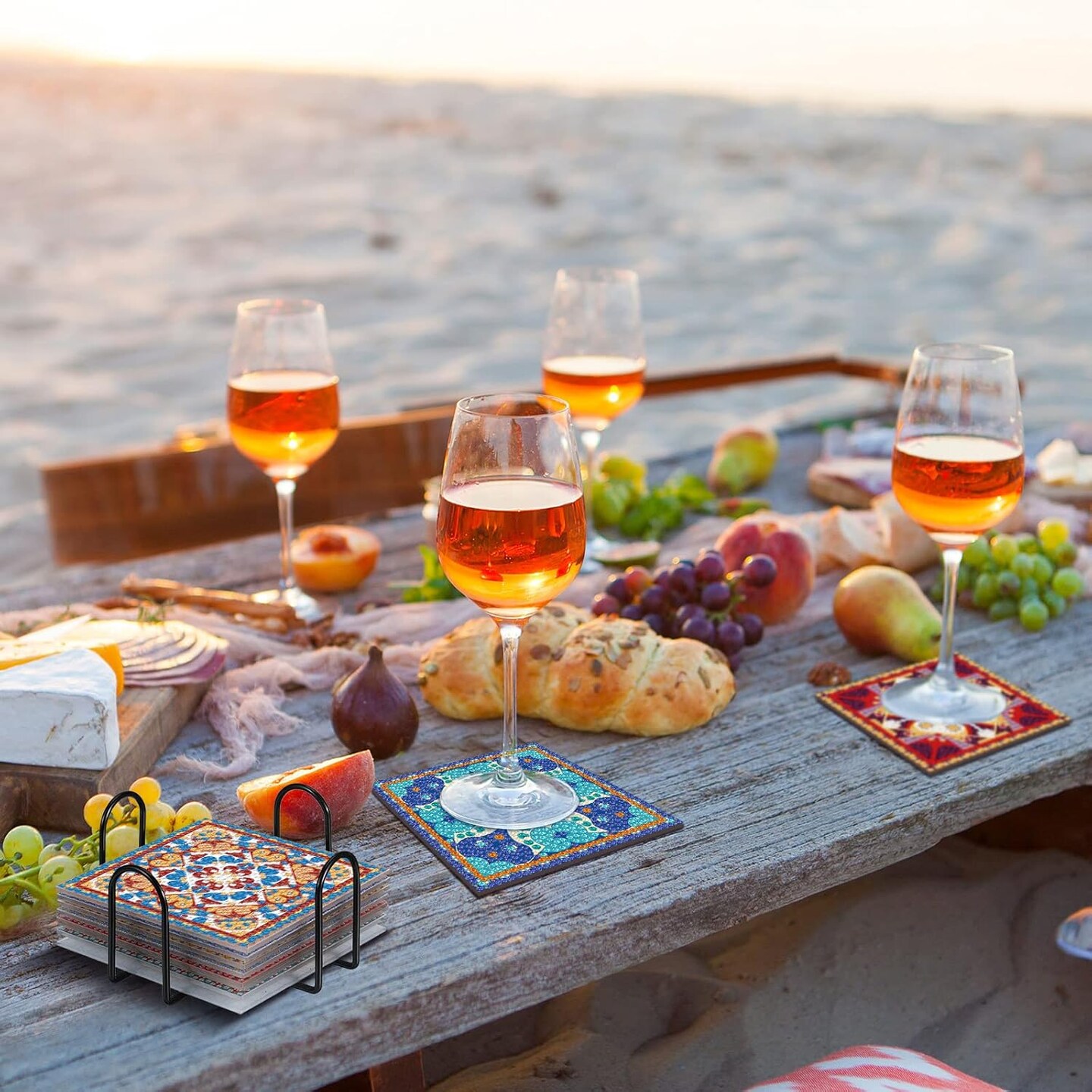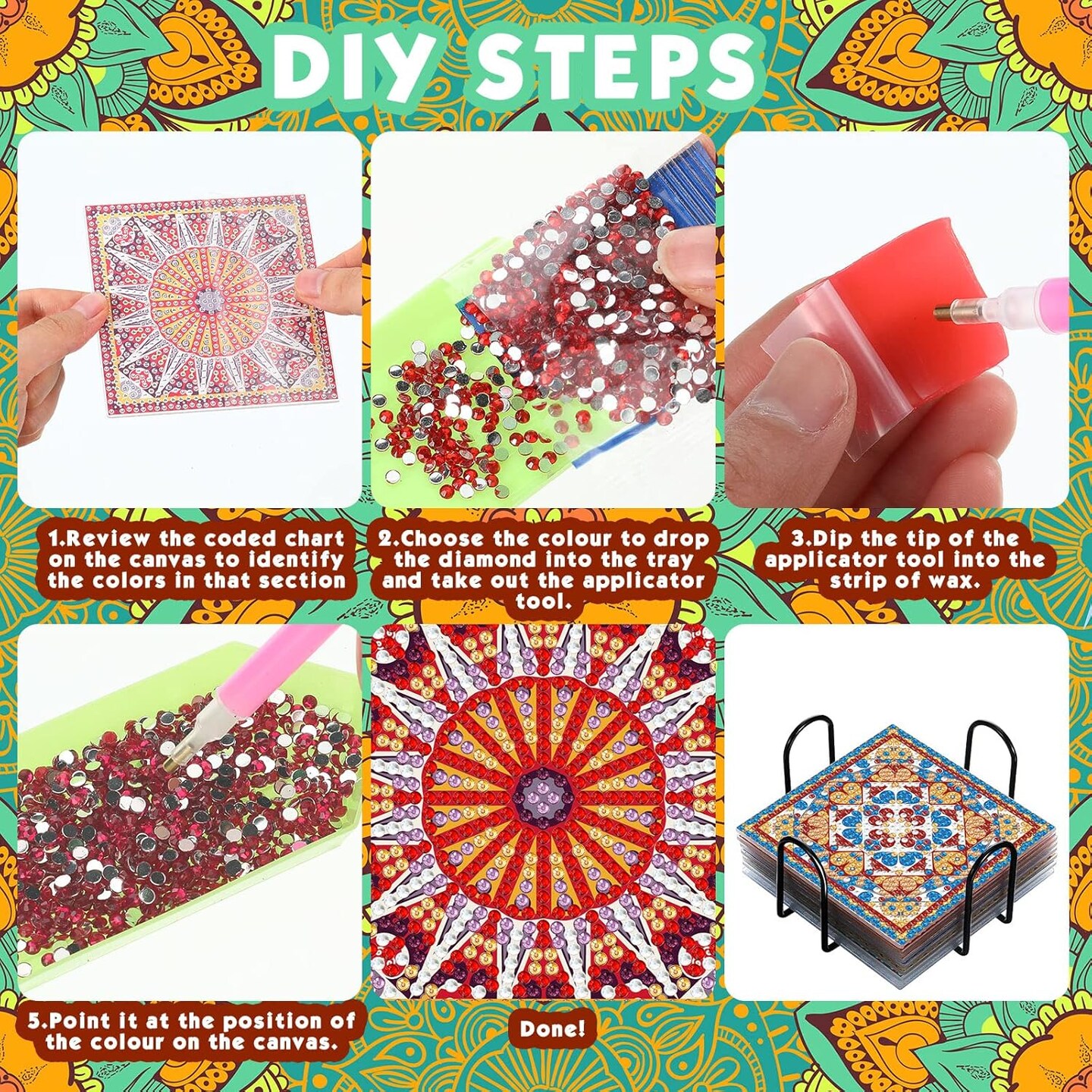 8 Pcs Mandala Diamond Painting Coasters Kit – DIY Boho Paisley Coasters with Holder, 5D Diamond Art Craft for Beginners & Adults