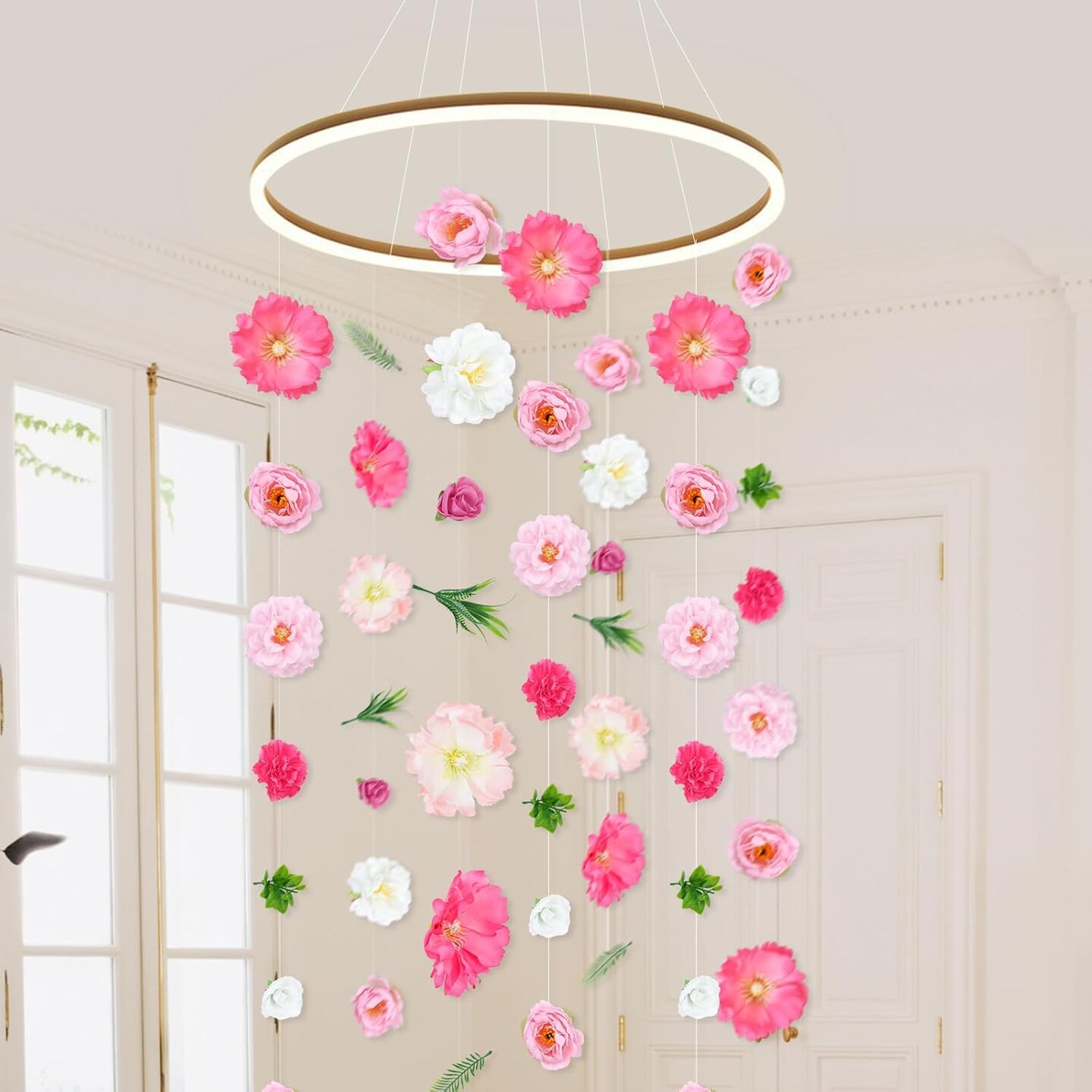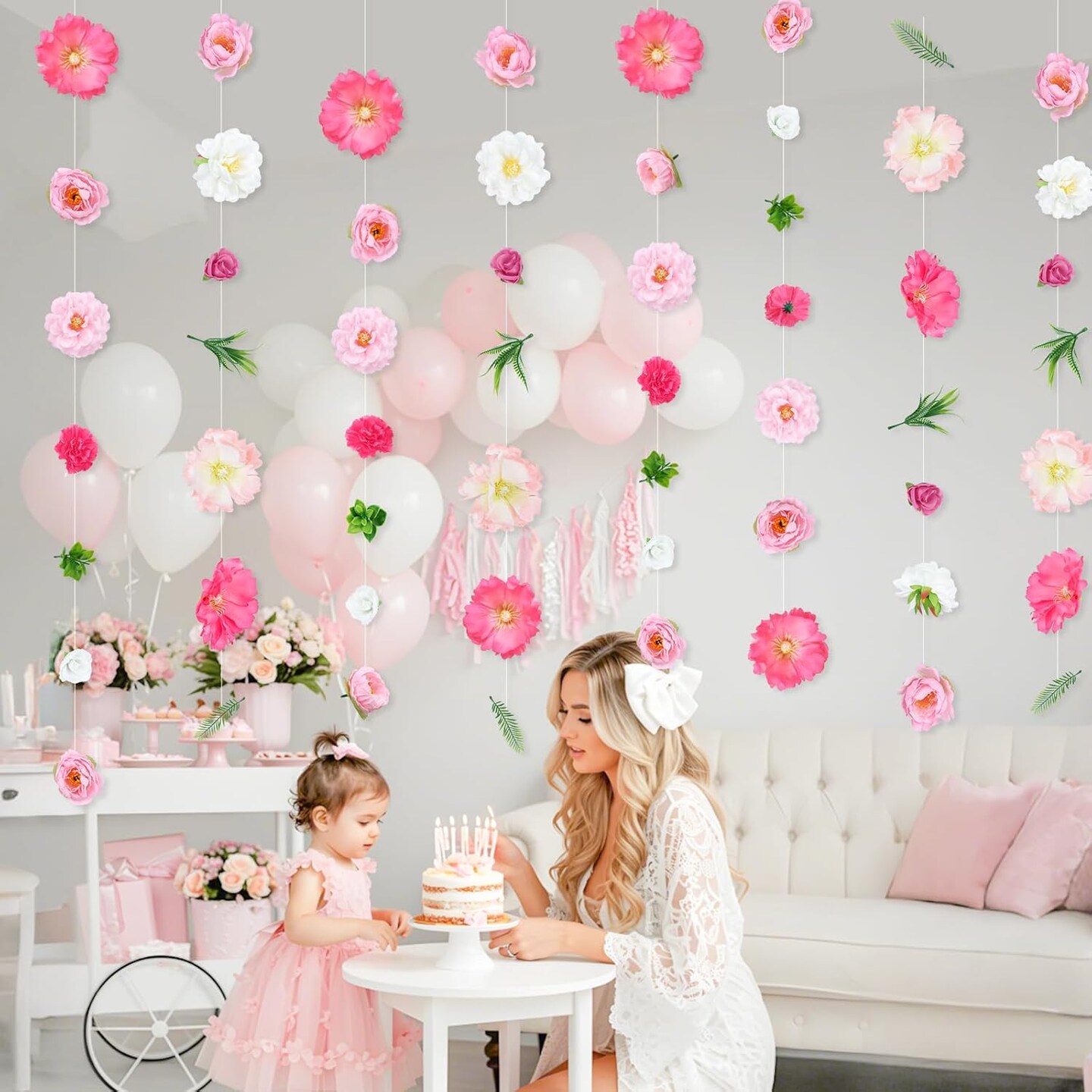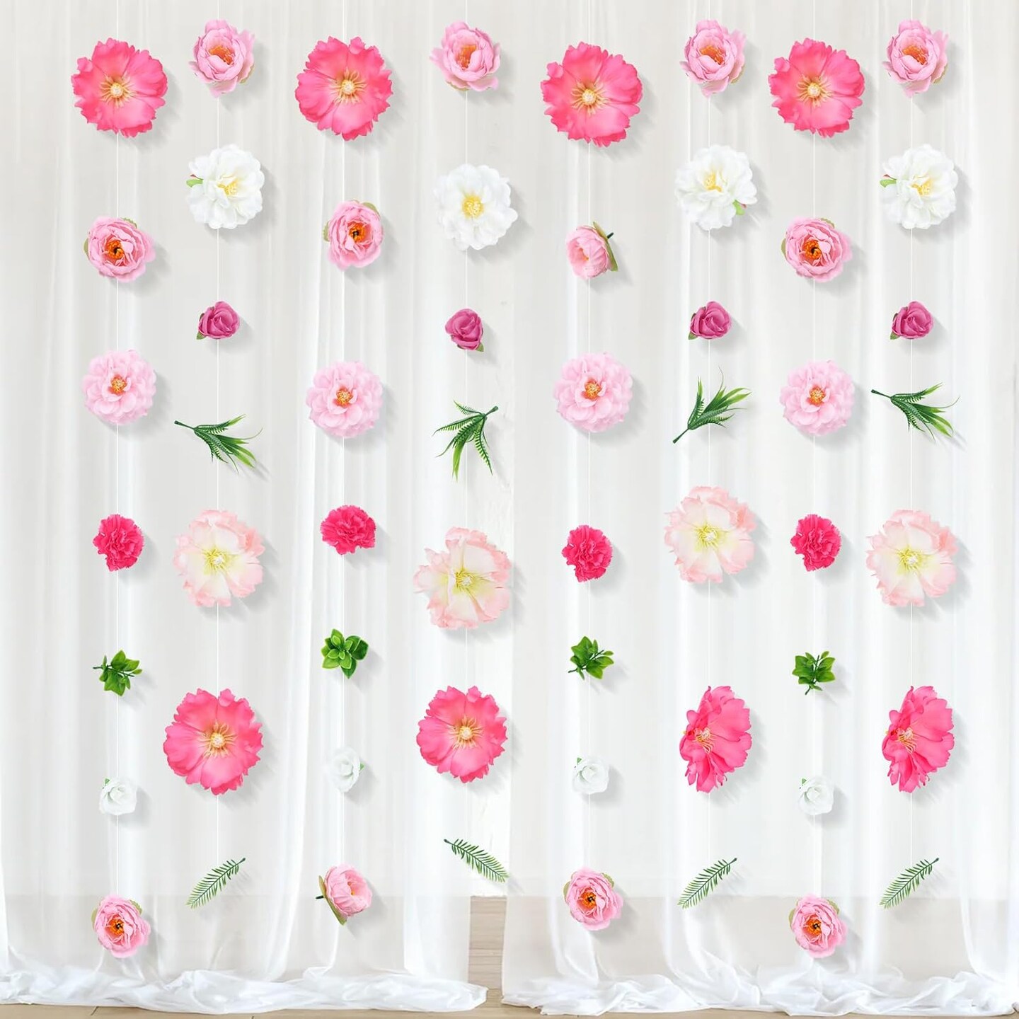 8 PCS Pink Artificial Flower Garland with Hooks – Hanging Floral Decorations for Wedding, Birthday, Baby Shower, Party & Home Décor