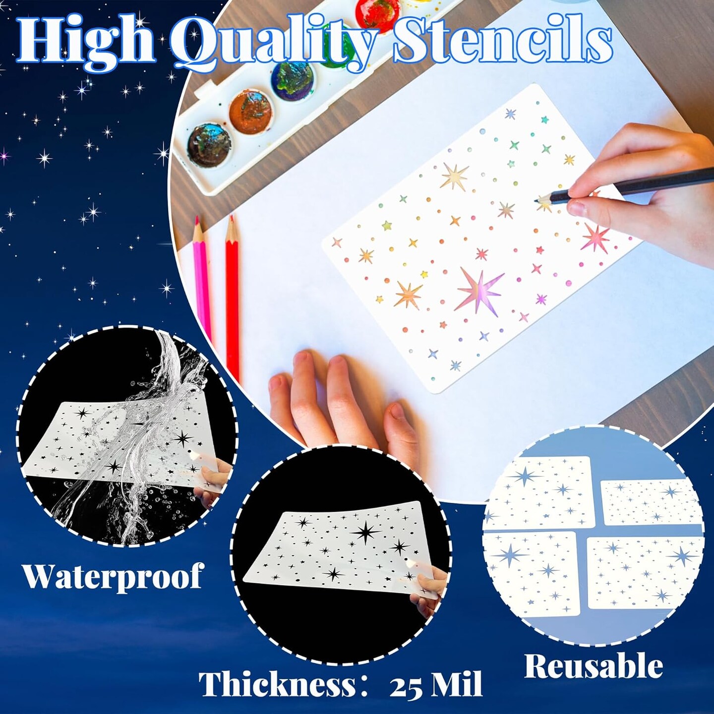 8 Pcs Reusable Independance Day Large Star Stencils (Starburst)