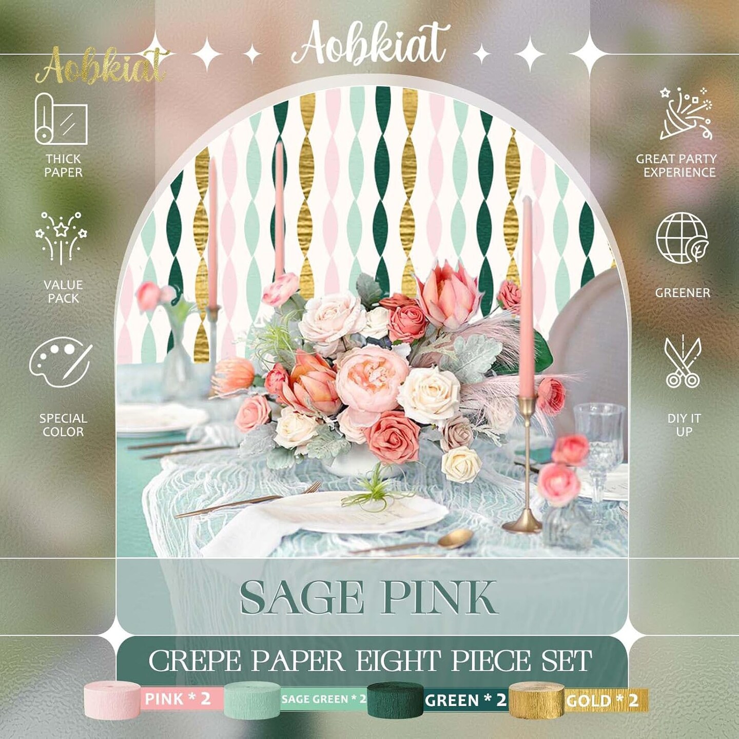 8 pcs Streamers Party Decorations for Wedding(Sage Pink)