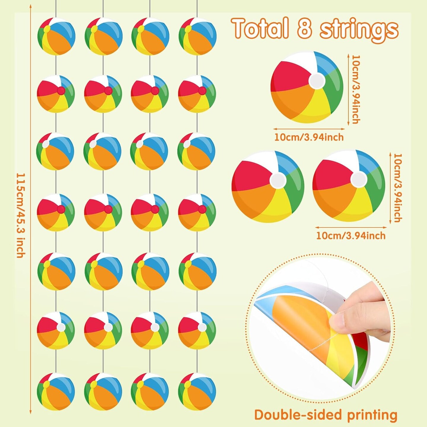 8 Pieces Beach Ball Garland Summer Pool Party Hanging Banner Decorations(Beach Ball)