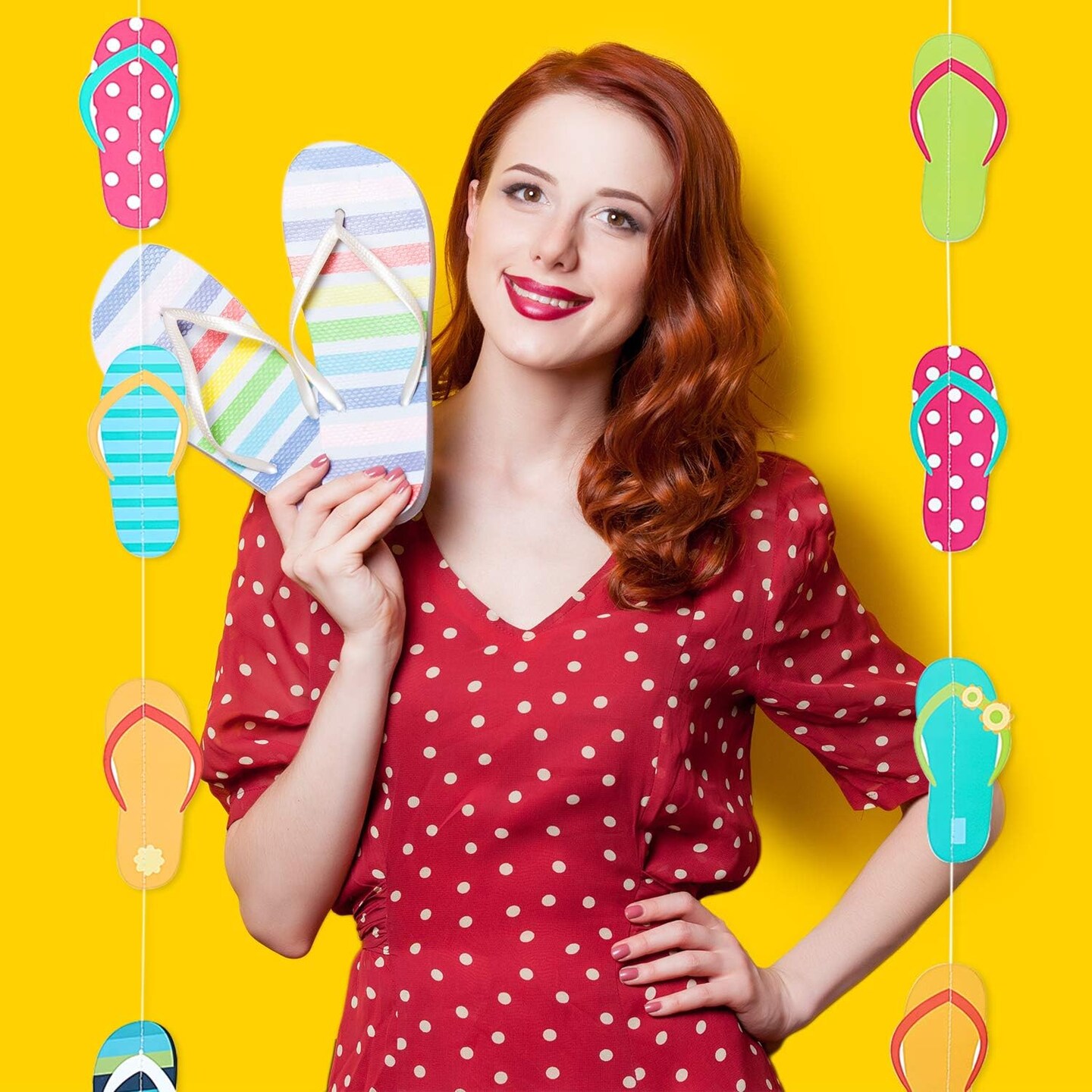 8 Pieces Flip Flop Decorations 52 Feet Summer Hanging Banner Beach Slipper Garland for Hawaiian Party
