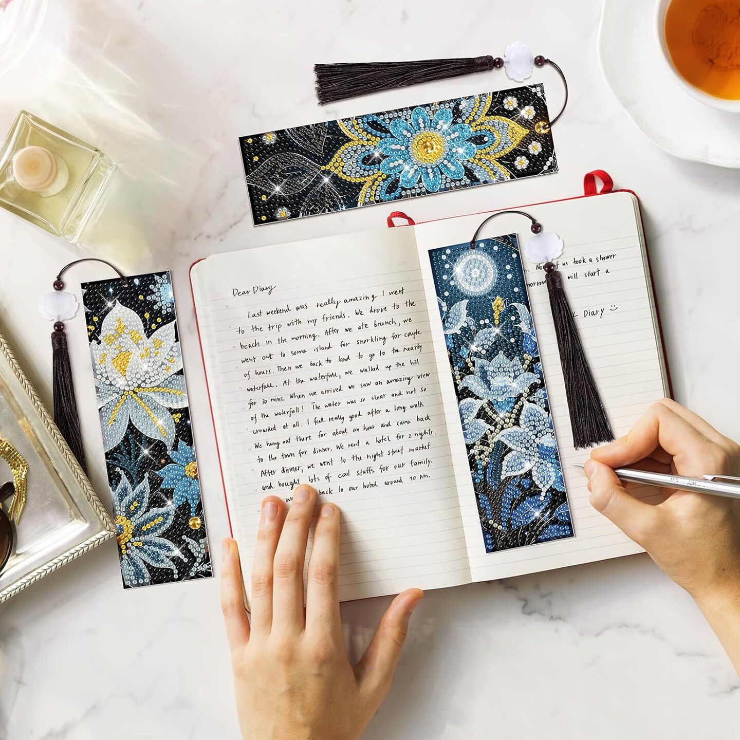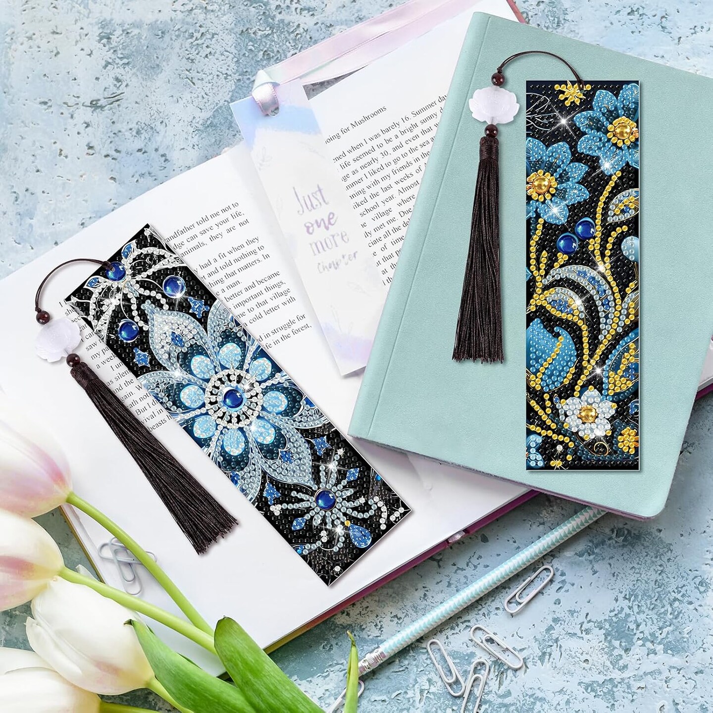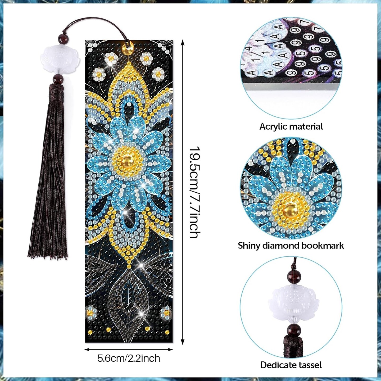 8 Pieces Floral Diamond Art Painting Bookmarks Kits for Beginners (Flower)