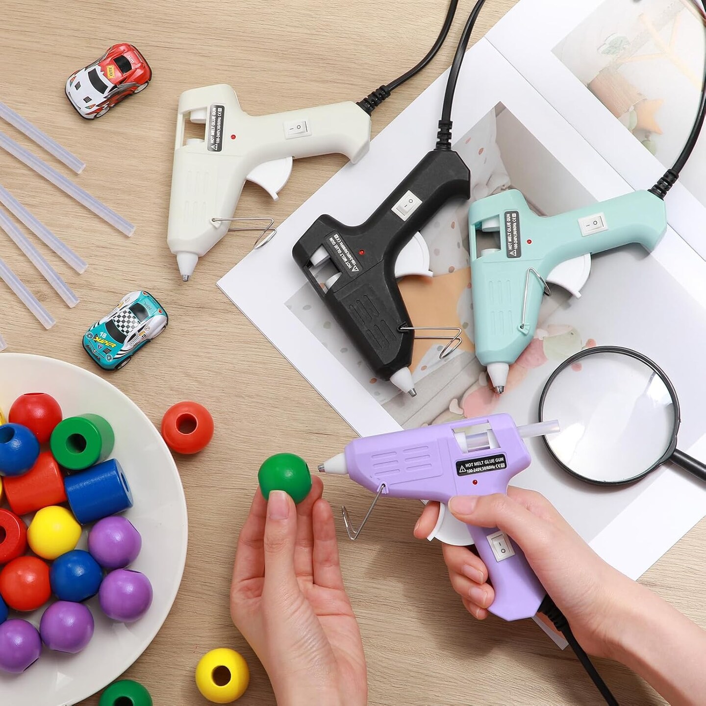 8 Pieces Mini Glue Gun for Class Project, Macaron Color Hot Melt Gun with 40 Glue Sticks, Low Temp Glue Gun with Burn Protection for Kids School DIY Arts Project Home Quick Repairs, 20 W