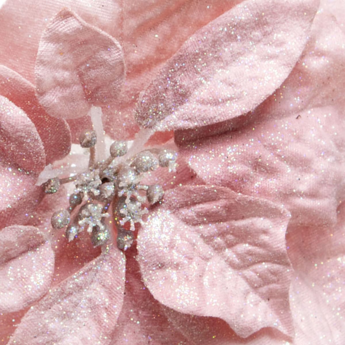 8" Pink Iridescent Glitter Poinsettia Clip Ornament – Sparkling Christmas Flower Décr