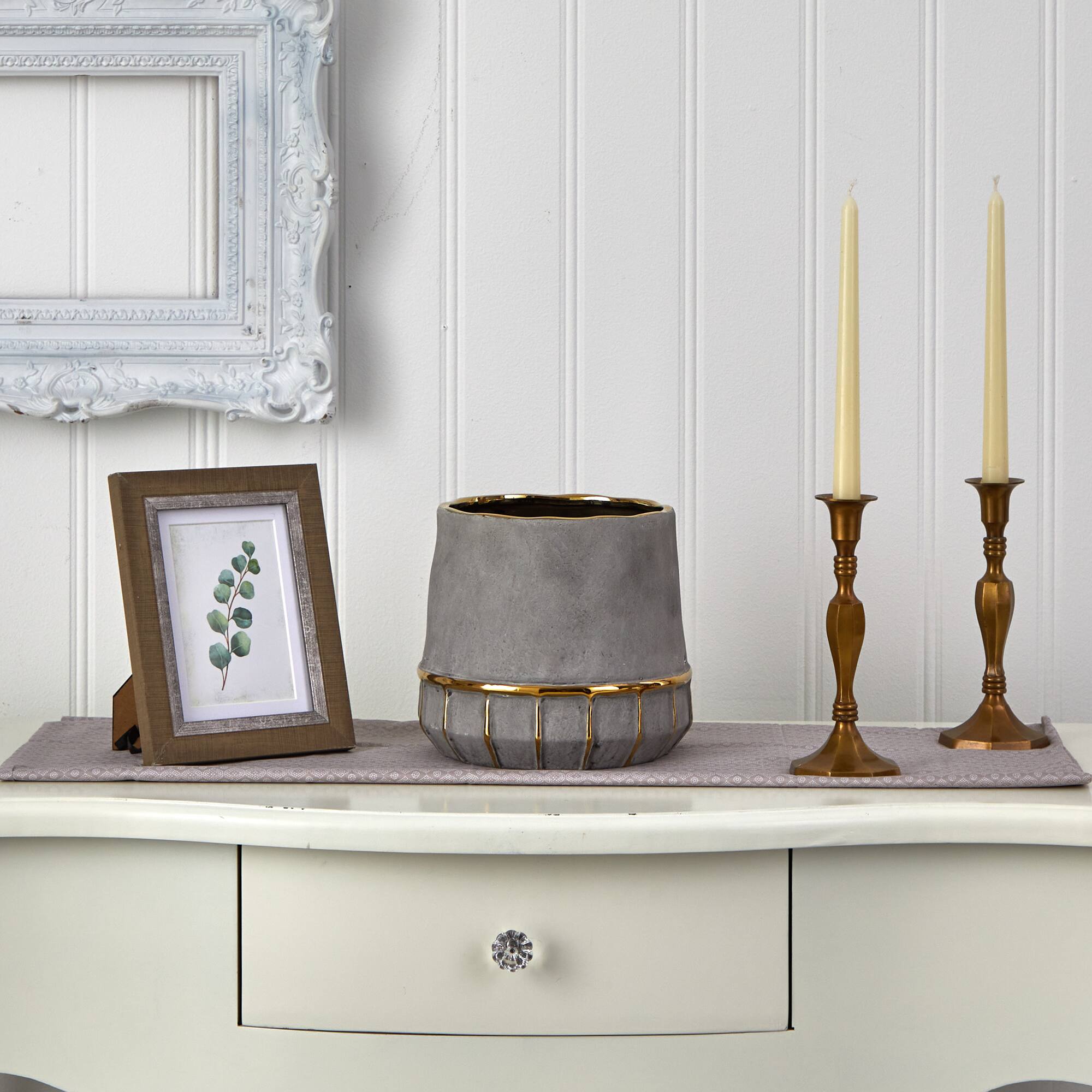 8" Regal Stone Decorative Planter with Gold Accents