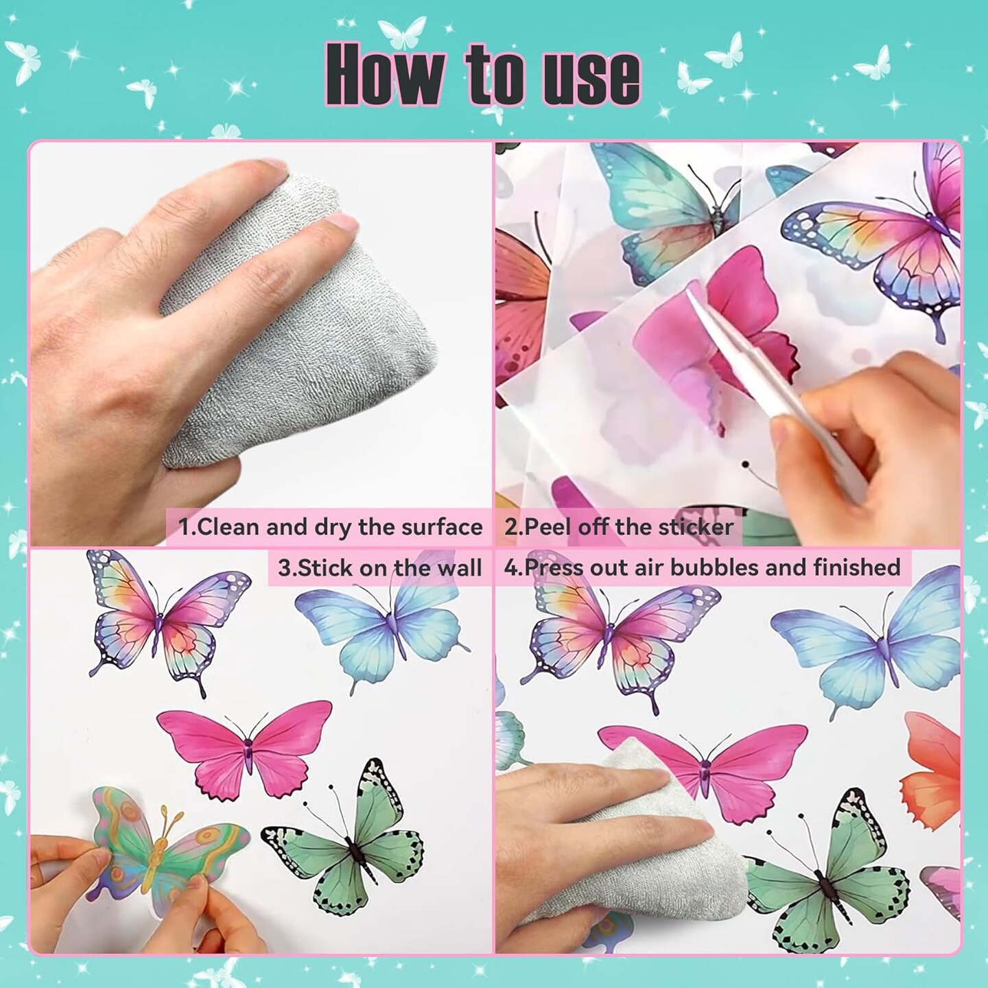 8 Sheets 62 Pcs Butterfly Watercolor Wall Decals - Butterfly