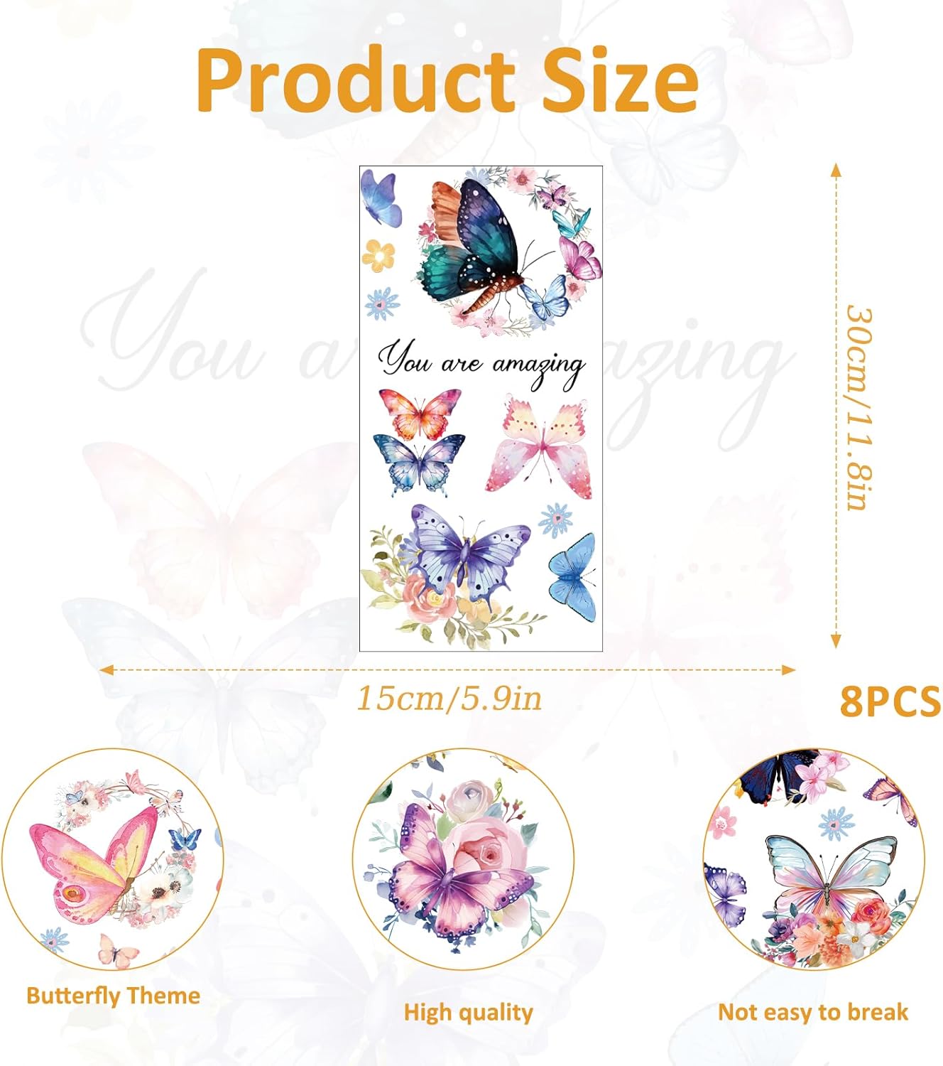 8 Sheets Butterfly Floral Rub on Transfer Stickers