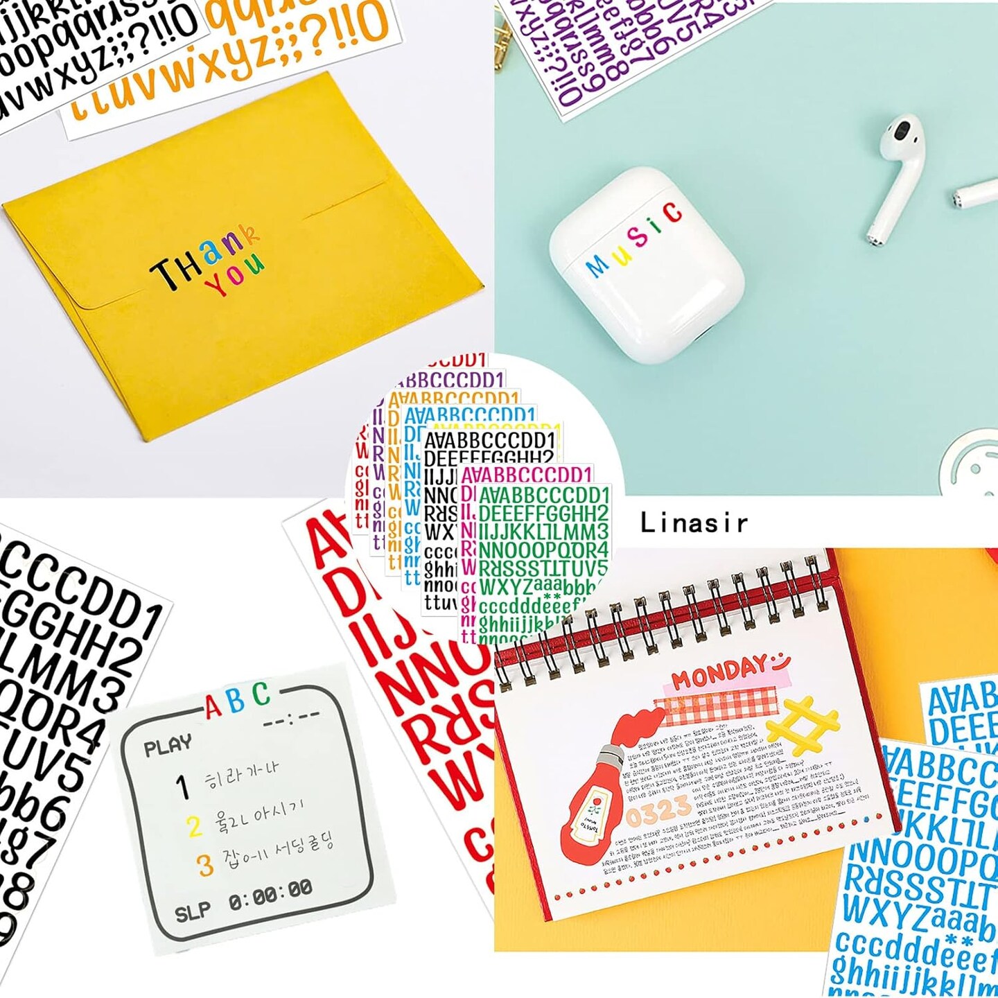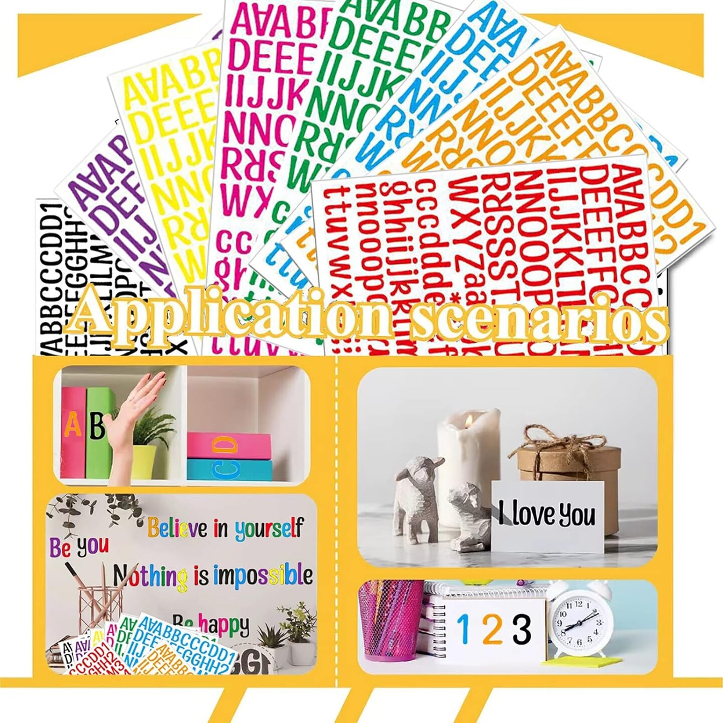 8 Sheets Letter Stickers, 1008 Alphabet Stickers,1 inch Vinyl Self-Adhesive Sticker Letters (Multicolored)