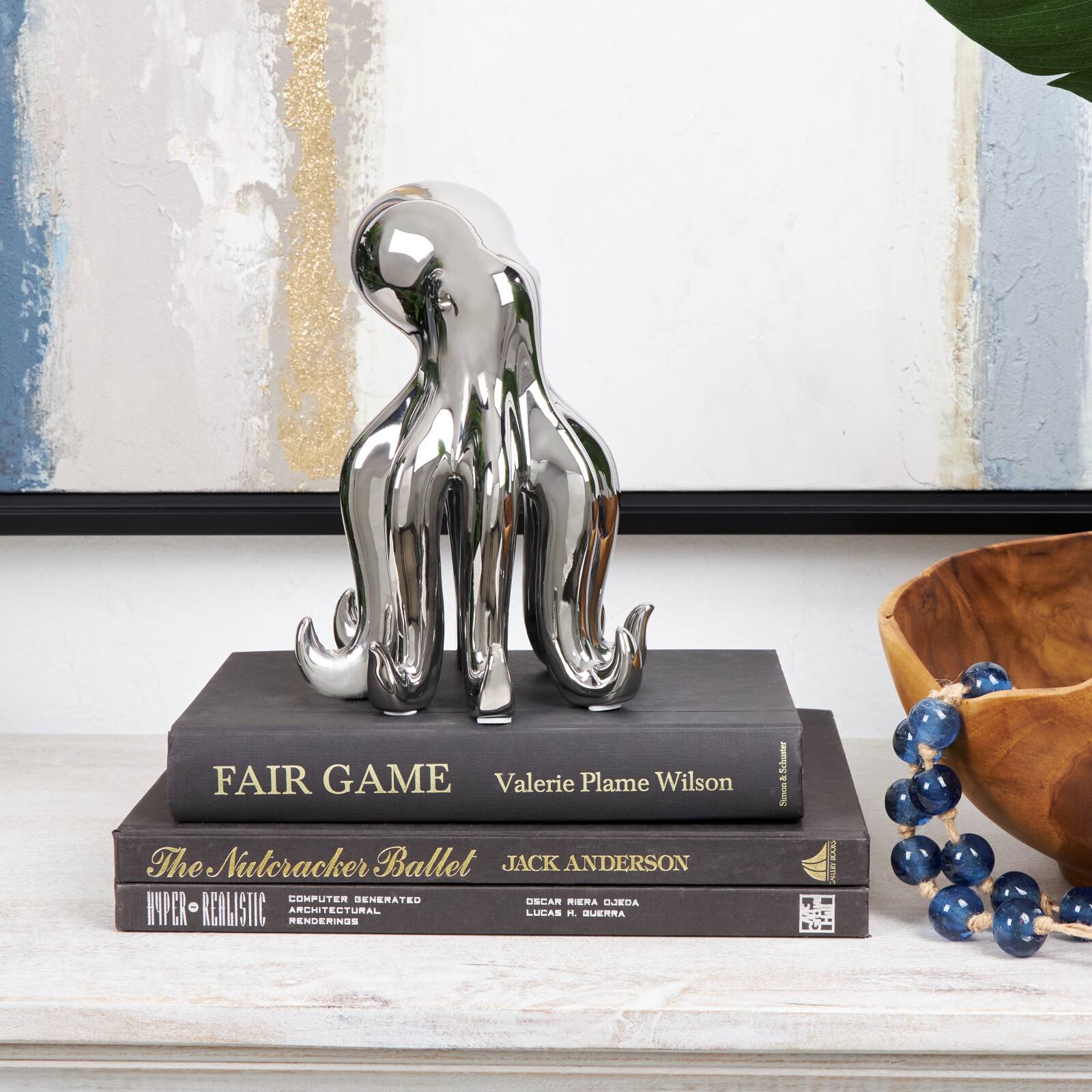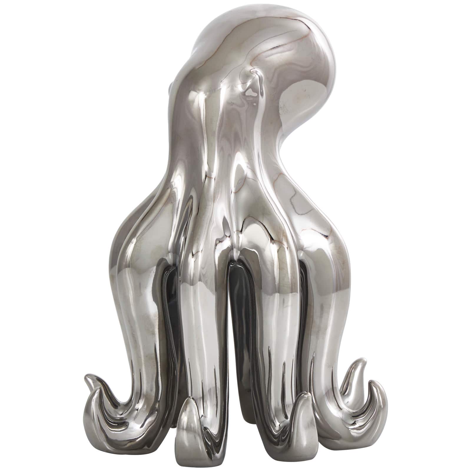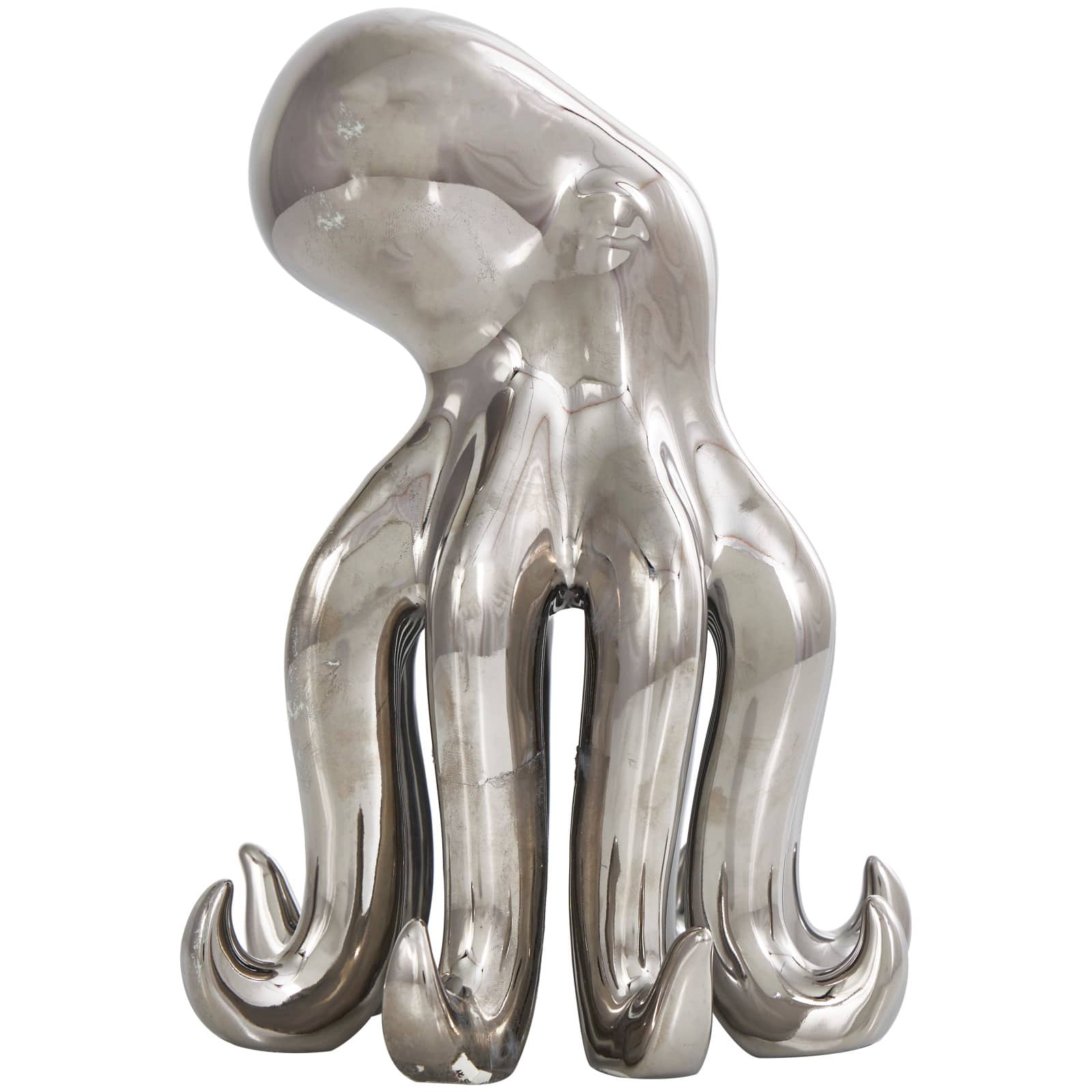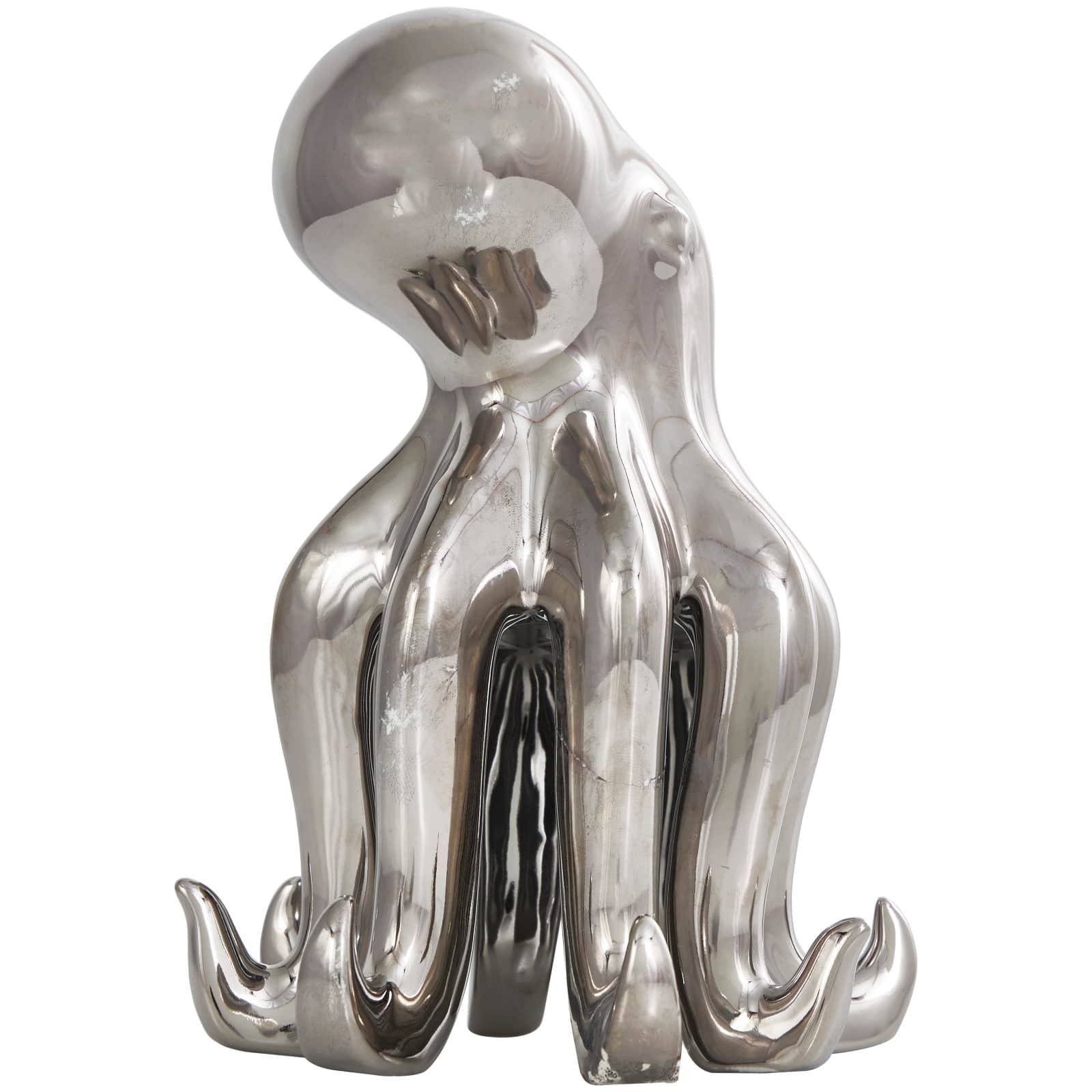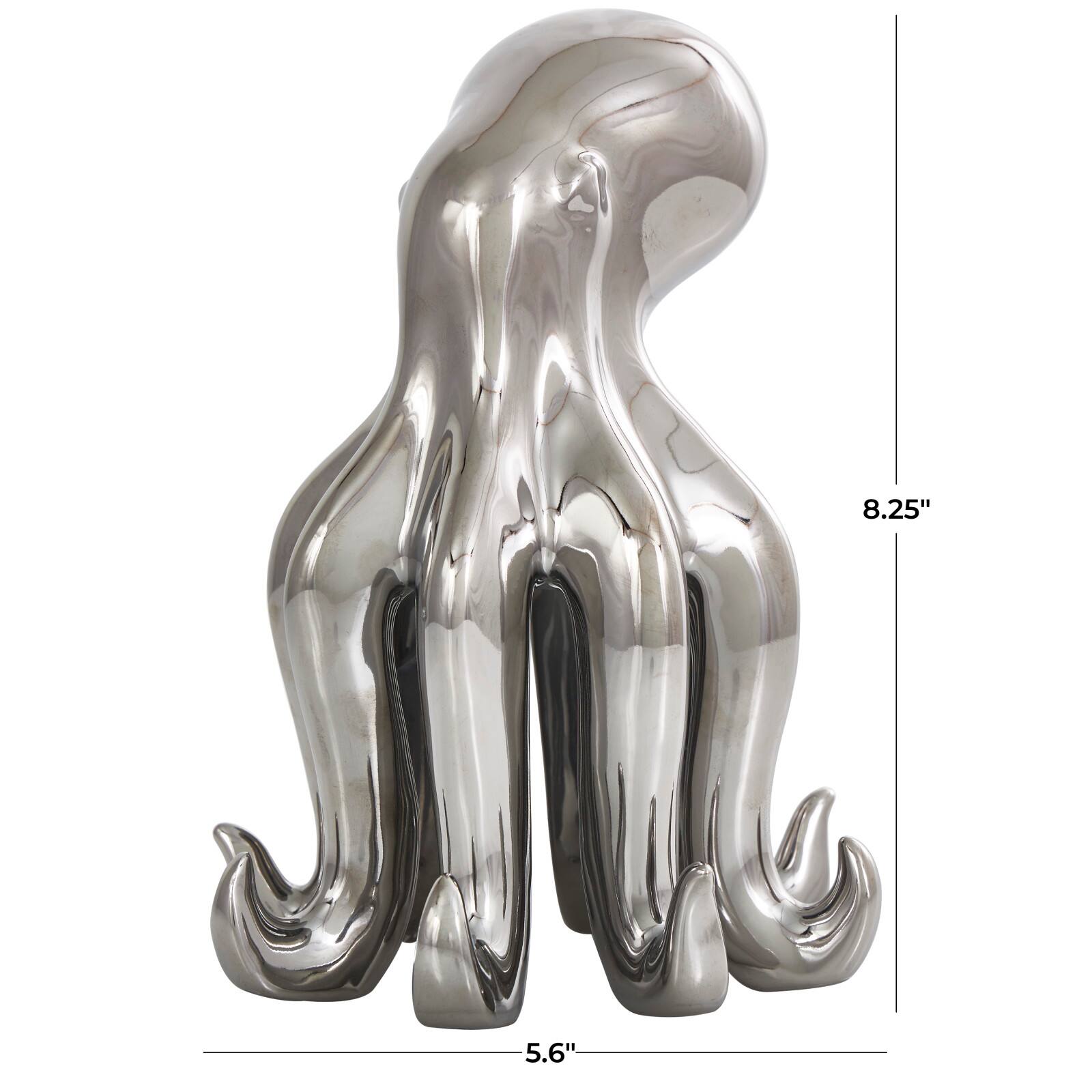 8" Silver Ceramic Octopus Sculpture